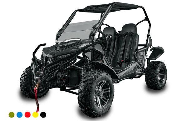 Уникальный, современный дизайн порадует глаз. Малый вес, габариты и фантастическая управляемость даст больше возможностей для динамичных прохватов по сухому грунту. Дорожный просвет 26см и колеса 10 радиуса позволят проверить себя и технику на бездорожье. Ватерлиния на уровне 30см открывает дорогу к водным преградам. А настраиваемая подвеска и шарнирное крепление подрамника сделает ваш отдых еще более приятным, даже если вы отправитесь в многочасовое путешествие.Усиленный каркас обеспечит большую безопасность, дополнительная защита ног лучше защитит от грязи, тканевая крыша даже в базовой комплектации сохранит голову в чистоте. В минибагги с двигателем 180 куб.см будет комфортно и детям от 10-12 лет и взрослым. Комфортно расположиться в багги может человек с ростом до 195 см.