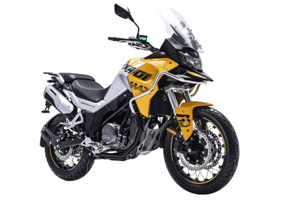 Мотоцикл CYCLONE RX401 2025 – туристический эндуро, готовый бросить вызов любым дорогам и расстояниям. За его рулём для вас не будет невозможных маршрутов!Оснащён рядным 2-цилиндровым 4-тактным двигателем DOHC объёмом 401 см³ с 4 клапанами на каждом цилиндре. Двигатель способен обеспечить мощность в 42,8 л.с. при 9500 об/мин, а максимальный крутящий момент 37 Н·м достигается на 8000 об/мин. Соотношение диаметра цилиндра и хода поршня 68х55,2 мм. Степень сжатия 11,6:1.Жидкостная система охлаждения не допустит перегрева двигателя даже при самом агрессивном вождении. Механическая коробка передач имеет 6 ступеней со схемой 1-N-2-3-4-5-6. Объём топливного бака 20 литров.Максимальная скорость мотоцикла 139 км/ч.Мотоцикл оснащён спицованными алюминиевыми колёсами диаметром 19 дюймов спереди и 17 сзади. Колёса обуты в бескамерные покрышки CST. В качестве передней подвески используется телескопическая вилка перевёрнутого типа, а сзади установлен маятник с моноамортизатором. Ход передней подвески 130 мм, задней – 55 мм. Оба компонента подвески регулируются. Для эффективного торможения используются гидравлические дисковые тормоза с 2-канальной ABS системой. Тормоза спереди представлены 2 тормозными дисками диаметром 305 мм с 4-поршневыми саппортами, а сзади расположен тормозной диск 258 мм с однопоршневым суппортом с плавающей скобой.Мотоцикл имеет продуманную конструкцию с высоко расположенным радиатором.Для освещения и сигнальных огней используется диодная светотехника. Данные от бортового компьютера выводятся на яркий цветной дисплей, оснащённый специальным козырьком для защиты от брызг и бликов. Имеются подсветка пультов, USB-порт, 12-вольтная розетка.Габариты 2160x860x1395 мм, снаряжённая масса 215 кг. Колёсная база 1410 мм, клиренс 185 мм, высота по седлу 810 мм.