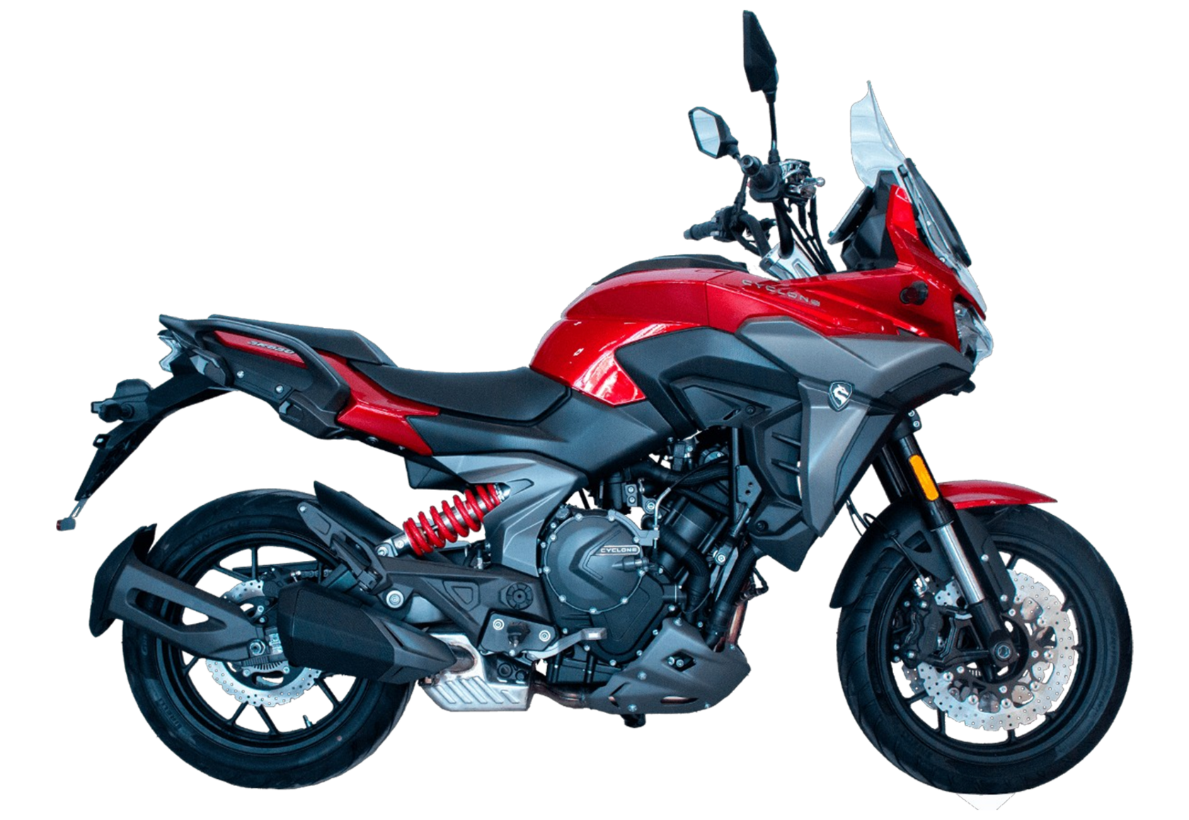 CYCLONE RX6 (SR650) – туристический эндуро для покорения самых непростых и протяжённых маршрутов. Он обладает агрессивным и современным дизайном, который выгодно выделяет его из всех остальных мотоциклов в своём классе. Мотоцикл дарит своему владельцу абсолютную свободу передвижения, позволяя долго и быстро ехать по шоссе, а при желании съезжать на такие дороги, по которым не проедет ни один дорожный мотоцикл. Небольшие габариты этого байка позволяют с успехом использовать его, как повседневный дорожный мотоцикл.Данная модель является самой крупнокубатурной в модельном ряде компании CYCLONE. Рядный двухцилиндровый четырёхтактный двигатель объёмом 650 см3 выдаёт мощность в 71 л.с. на 8500 об/мин. Максимальный крутящий момент достигается на 7000 об/мин и составляет 62 Н·м. Инжекторный впрыск топлива с блоком управления BOSCH увеличивает топливную экономичность, а также позволяет добиться высокой приёмистости и неприхотливости агрегата. Жидкостная система охлаждения не допустит перегрева двигателя даже при самом агрессивном вождении. На мотоцикл установлена 6-ступенчатая механическая коробка передач.Максимальная скорость мотоцикла составляет 180 км/ч.Модель оснащена литыми алюминиевыми дисками диаметром 17 дюймов. Колёса обуты в бескамерные покрышки от легендарной фирмы PIRELLI. С неровностями дороги эффективно справляются компоненты производства культовой японской компании KYB – телескопическая вилка перевёрнутого типа спереди и маятник с моноамортизатором сзади. Ход передней подвески составляет 130 мм, задней – 51 мм. Оба компонента подвески являются регулируемыми. Эффективное и безопасное замедление с любых скоростей обеспечивают гидравлические дисковые тормоза с двухканальной системой ABS спереди и сзади. Тормозные системы произведены известной испанской фирмой J.JUAN (входящей в легендарный холдинг BREMBO).Мотоцикл отличает хорошо продуманная компоновка с высоко расположенным радиатором. Высота 820 мм по седлу позволяет чувствовать себя комфортно даже райдерам небольшого роста. На данной модели установлена металлическая защита выхлопной системы и масляного фильтра. Под пассажирским сиденьем размещён небольшой, но крайне полезный набор инструментов.RX6 (SR650) оснащён бортовым компьютером с информативным цветным дисплеем и кнопками управления на руле, а также двумя штатными видеорегистраторами спереди и сзади. Из других приятных мелочей в допоборудовании мотоцикла стоит выделить регулируемое при помощи кнопки ветровое стекло, датчики давления в шинах, подсветку пультов, бесключевой доступ и 2 USB-порта.Клиренс мотоцикла составляет 165 мм. Объём топливного бака – 20 л. Снаряжённая масса – 245 кг.Мотоцикл сочетает в себе отличные технические характеристики, богатое оснащение, комфорт и надёжность, что позволяет вам ощутить настоящую свободу, отправившись на нём в любое путешествие.