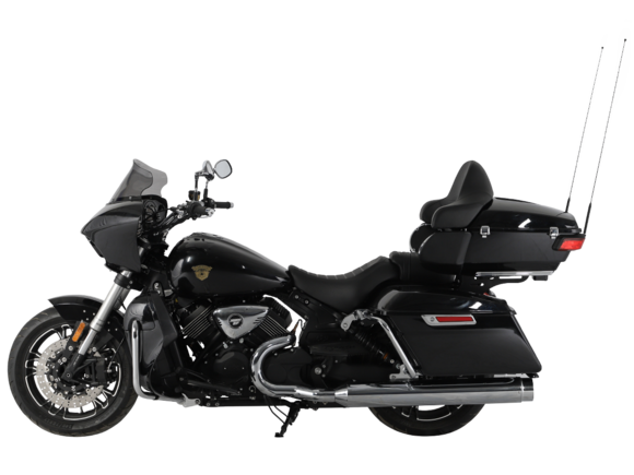 GROZA Traveller 800 – роскошный круизёр, который создан для суперкомфортного перемещения на любые расстояния. Он имеет современный, брутальный дизайн с мощным обтекателем, характерной светодиодной головной оптикой и монументальными хромированными глушителями.Двухцилиндровый V-образный двигатель объёмом 800 см3 мощностью 61 л.с. при высоких показателях динамики и отличном крутящем моменте способен разгонять аппарат до 160 км/ч. Привод на ведущее колесо осуществляется ремнём знаменитой марки USA Gates. Жидкостная система охлаждения не допустит перегрева мотора даже на самых непростых маршрутах.На мотоцикл установлены литые алюминиевые диски диаметром 17 дюймов. Ширина передней покрышки – 140 мм, задней – 200 мм. С неровностями дороги эффективно справляются телескопическая вилка перевёрнутого типа спереди и маятник с двумя амортизаторами сзади. Вилка имеет 7 ступеней регулировки, что обеспечивает лёгкую перестройку на различные режимы езды. Для всего класса круизёров такая опция – большая редкость. Эффективное и безопасное замедление с любых скоростей обеспечивают гидравлические дисковые тормоза спереди и сзади от компании NISSIN.Мотоцикл оснащён мощной музыкальной системой с четырьмя 6,5-дюймовыми динамиками, двумя штатными видеорегистраторами спереди и сзади, тремя грузовыми кофрами общим объёмом 120 литров, развитой спинкой для пассажира, массивными дугами и “валенками”, снабжёнными открывающимися вентиляционными шторками и небольшими грузовыми ёмкостями. Из других приятных мелочей в допоборудовании мотоцикла стоит выделить подогрев ручек, датчики давления в шинах и USB-порт.Мотоцикл сочетает в себе отличные технические характеристики, богатое оснащение, комфорт и надёжность, что позволяет вам ощутить настоящую свободу, отправившись на нём в любое путешествие.