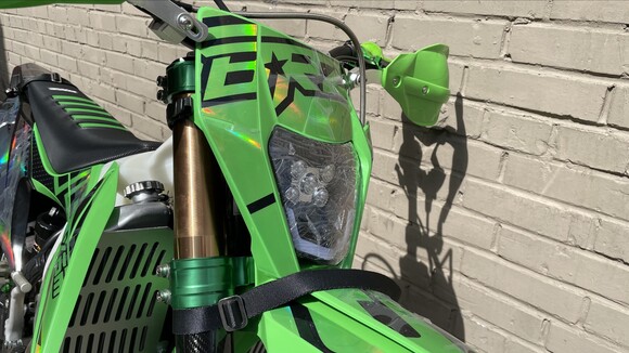 Навесное – Руль BRZ twinwall 28мм алюминиевый, короткоходная ручка газа NIBBI, Алюминиевые фрезерованные траверсы CNC. Цепь 520. Алюминиевые подножки водителя. Алюминиевые решетки радиатора. Фрезеровання прогрессия, защита тормозного диска, защита рук, боковая защита рамы, алюминиевая ведомая звезда CNC. Счетчик моточасов. Алюминиевый подрамник. USB зарядка.