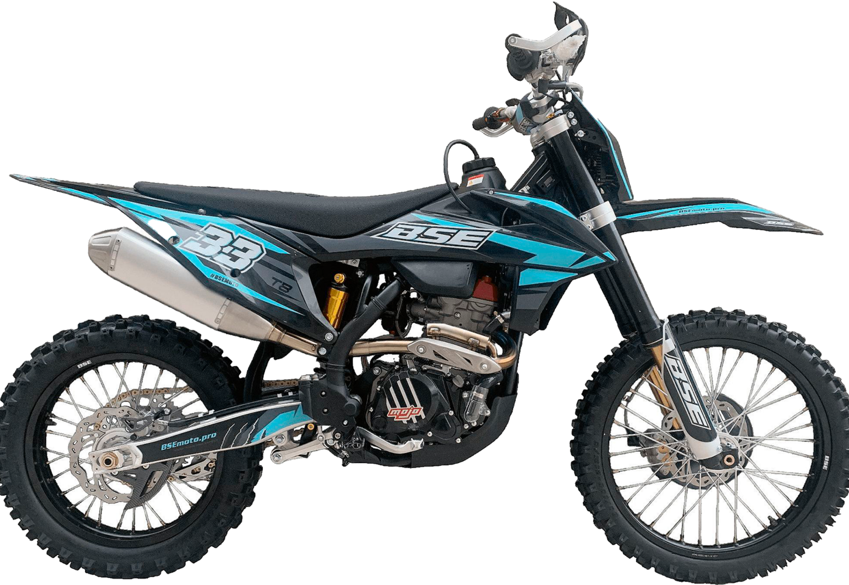 Новинка Т8 из абсолютно новой линейки 2023 года – T серии!Наша гордость – новый мотор TYAN TYX250-SR. Данный мотор является эксклюзивным для бренда BSE на российском рынке. Официально только у BSE Russia есть разрешение на установку мотора TYAN TYX250-SR на свою продукцию.TYAN Motor -профессиональный производитель двигателей и мотоциклов из индустриальной провинции на юго-востоке Китая. TYAN Motor специализируется на разработке, производстве, продаже и сервисе высококачественных моторов и мотоциклов вот уже 11 лет. Капитал компании составляет 1,5 млн $. Территория завода – 29 гектаров, есть современное оборудование и автоматизированные транспортные линии. Собственный первоклассный отдел разработок (R&D center) защитил более 200 патентов. Продукция завода крайне распространена не только в Китае, но и во всем мире. Ежегодно выпускается 1.5 миллионов двигателей и 300 000 мотоциклов. Все нацелено на качество продукции. Цель компании: выпускать самые лучшие двигатели на рынке. Слоган компании: "Еще больше мощности при лучшем качестве".Новый двигатель TYAN TYX250-SR – один из самых технологичных, современных и мощных из доступных на китайском рынке. Рабочий объём -250сс, 4-х тактный, 2 распредвала DOHC, 4-клапанная ГБЦ, водяное охлаждение, балансирный вал. Система питания – проверенный карбюратор Nibbi Racing 34 Black. Все это позволило снять внушительные 29 л.с. при 9000 об. в мин. и 24 Нм при 7500 об. в мин. Коробка передач – механическая 6 ступенчатая, запуск – только электростартером. Мотор сделан максимально легким, прочным и эффективным, с минимальными вибрациями для комфортного передвижения.Ещё одна особенность модели Т8 – абсолютно новая рама, которая полностью соответствует всем стандартам самого известного австрийского бренда мотоциклов для кросса и эндуро – KTM. Единая геометрия, эргономика, пропорции и углы вылета вилки. Высококачественная сталь, малый вес и большой запас прочности, идеальная развесовка. Мотоцикл оснащен легким алюминиевым подрамником, системой прогрессии и пластиковой защитой мотора. Установлен новый тип пластика - прочный, легкий и современный. Короткая колесная база в 1460 мм добавляет отменную маневренность.T8 оборудован фирменной заводской спортивной подвеской BSE Mojo Racing. Подвеска с большими ходами имеет полный диапазон регулировок и помогает отрабатывать даже самые жесткие приземления, с лёгкостью "глотая" все неровности. Подвеску легко настроить под любой рельеф, любую трассу и стиль езды. Вы ощутите результат, когда будете сокращать секунды круг за кругом! Особое внимание было направлено на снижение веса всей подвески.Разработка подвески BSE Mojo Racing производилась опытными инженерами-подвесочниками завода, а настройка - под чутким контролем заводской спортивной китайской командой BOSUER. Спереди установлена полностью регулируемая вилка «перевертыш» BSE Mojo Racing c перьями диаметром 53/58.5 мм, 930 мм. Сзади установлен полностью настраиваемый моноамортизатор BSE Mojo Racing 480 мм.На T8 установлен топливный бак на 8 л, мощная тормозная гидравлическая система с дисками диаметром 240 мм, звезды 13t – 49t, «зубастые» покрышки Carrystone 80/100-21 спереди и 110/90-18 сзади. Мотоцикл оснащается полностью светодиодной фарой головного света, грипсами и ручкой газа Nibbi Racing, цепкой шкуркой сиденья и защитой переднего тормозного диска.Легкий (сухая масса 114 кг), прекрасно сбалансированный, мощный мотор. Отточенн