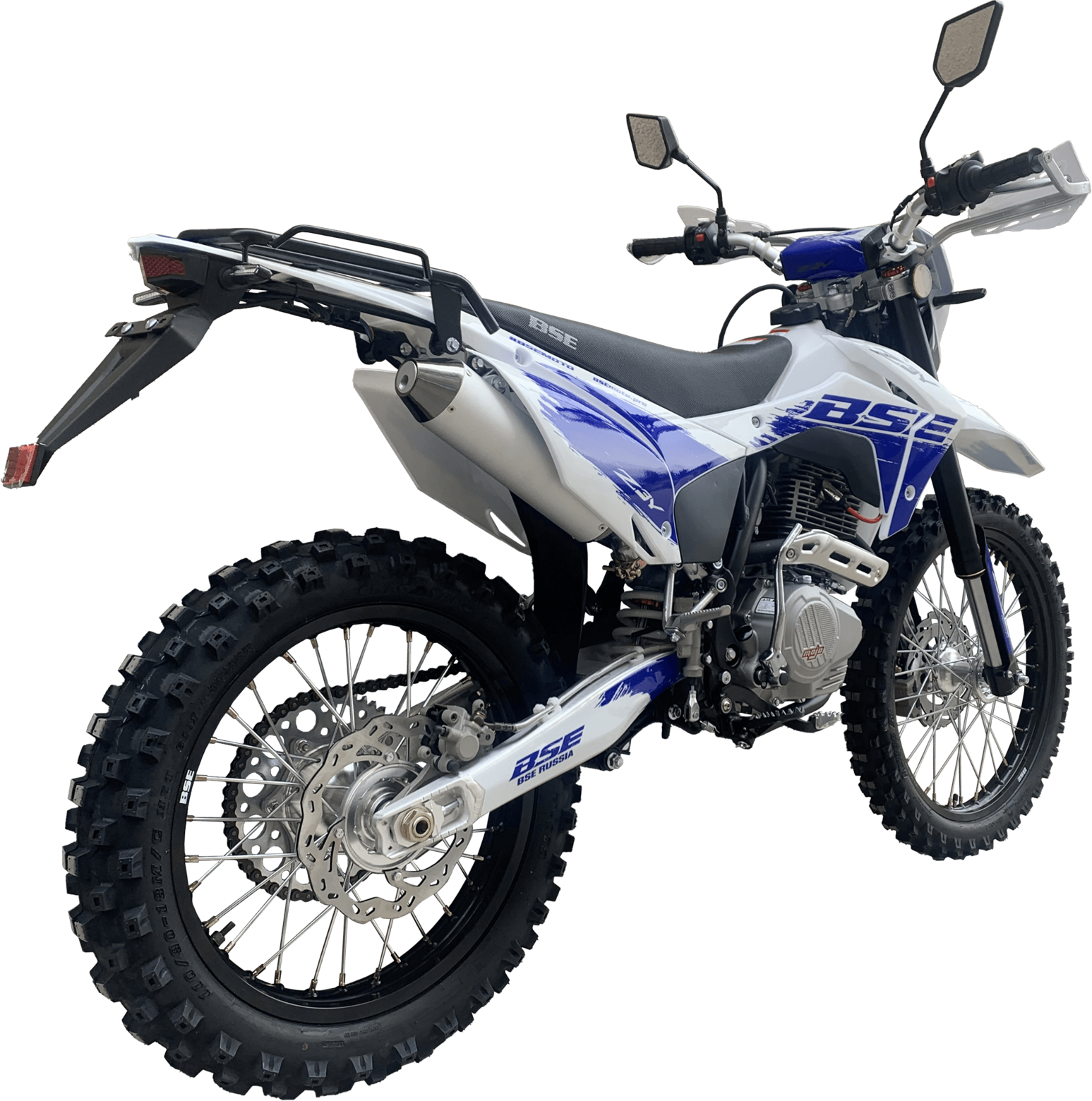 Кроссовый мотоцикл BSE Z3 Y 21/18 дает возможность беспрепятственно покорять бездорожье и комфортно передвигаться в городских условиях. Это модель двойного назначения, она относится к среднеразмерной линейке и имеет ПТС для свободного передвижения по дорогам общественного назначения.Движущую силу, равную 21 л.с., производит мощный 250-кубовый двигатель с воздушным охлаждением. Слаженную работу этого четырехтактного агрегата обеспечивает производительный карбюратор PE-30 от Nibbi, а эффективность – механическая 5-ступенчатая КПП с многодисковым масляным сцеплением.Основу конструкции составляет жесткая стальная рама, оснащенная литыми усилителями. Регулируемая подвеска и гидравлическая тормозная система HSК Racing улучшают управляемость байка и безопасность движения. Высокую проходимость гарантирует наличие большого клиренса в 330 мм и внедорожной резины с агрессивным протектором
