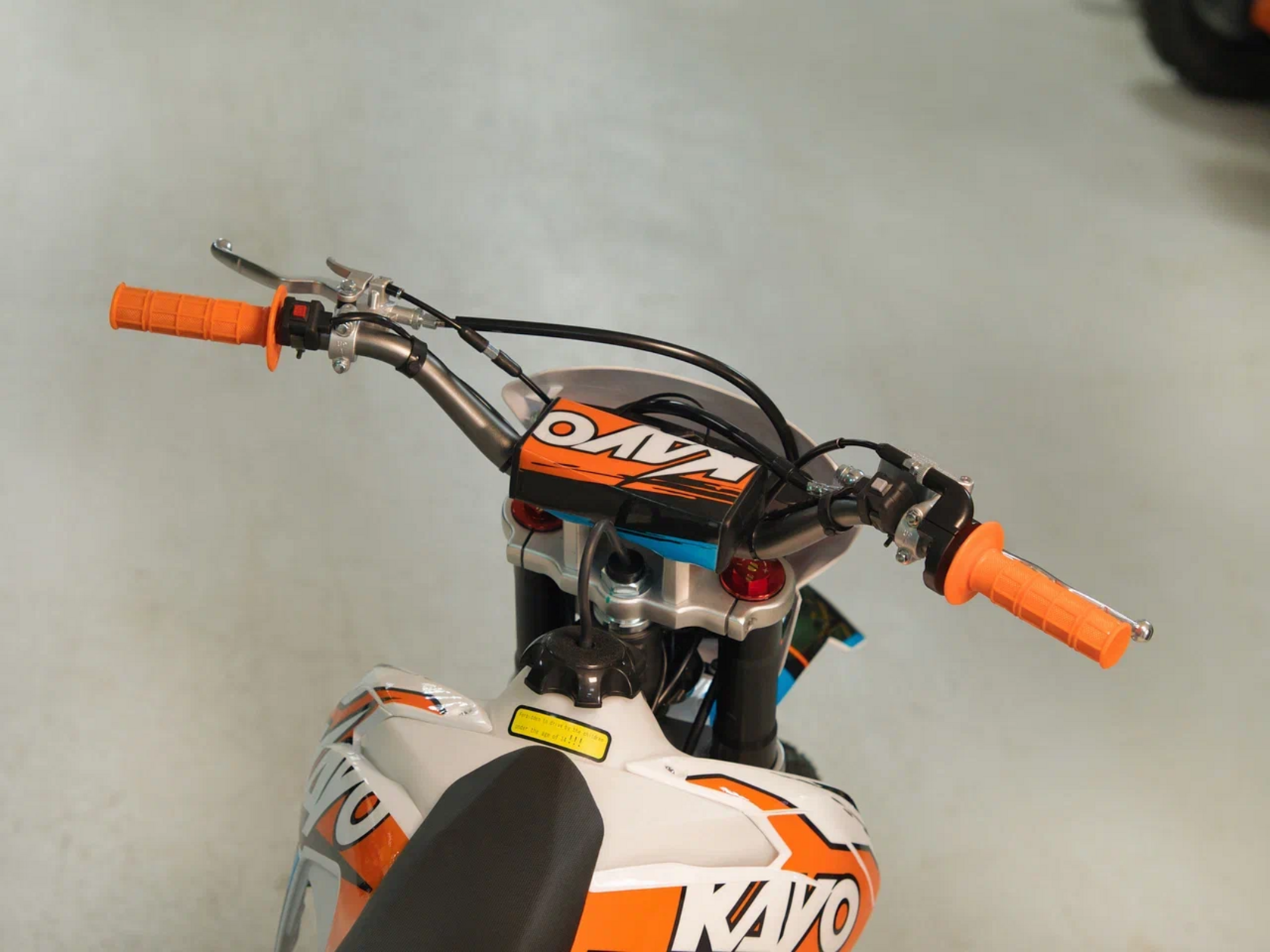 Мотоцикл KAYO K1 250 MX – “народная” версия внедорожного мотоцикла от компании KAYO. Идеальный снаряд для внедорожного экстрима, представляющий собой оптимальный баланс производительности и технической оснащённости, поэтому он идеально подходит как новичкам, так и опытным райдерам. Удобный, простой и надёжный мотоцикл, который полностью оправдывает свою цену.Мотоцикл оснащён одноцилиндровым 4-тактным двигателем воздушного охлаждения (ZONGSHEN ZS172FMM) объёмом 249 см3, который обеспечивает высокую мощность (21 л.с.) и крутящий момент, что позволяет развивать большую скорость и с лёгкостью преодолевать трассы со сложным рельефом. Карбюраторная система подачи топлива с карбюратором NIBBI PE30 обеспечивает бесперебойную работу техники в самых жёстких условиях эксплуатации, простоту и лёгкость в обслуживании, а также неприхотливость к качеству топлива. Аппарат оснащён 5-ступенчатой механической коробкой передач с классической схемой “1-N-2-3-4-5”.Усиленная рама из хром-молибденового сплава и подвеска позволяют эффективно амортизировать удары при езде по неровностям и препятствиям на трассе. Передняя подвеска телескопическая вилка перевёрнутого типа от фирмы KKE длиной 800 мм, задняя — нерегулируемый моноамортизатор 360 мм, рассчитанный на высокие нагрузки до 900 LBS, также произведённый компанией KKE. Мотоцикл оснащён классическими спицованными колёсами диаметром 18 и 21 дюйм. Колёса имеют усиленные обода из алюминиевого сплава и буксаторы. Эффективное и безопасное замедление с любых скоростей обеспечивают гидравлические дисковые тормоза.Мотоцикл достаточно компактен и имеет вес всего в 105 кг, поэтому он комфортен в эксплуатации одновременно и для мужчин среднего телосложения, и для девушек. Аппарат оснащён системой запуска двигателя при помощи кнопки электростартера или при помощи рычага кик-стартера.Высококачественная износостойкая резина с развитым протектором отлично держит дорогу на различных типах покрытия и в самых разных поворотах. Сиденье эргономичной формы покрыто антискользящим материалом.K1 250 MX сочетает в себе отличные технические характеристики, комфорт и надёжность, что позволяет вам ощутить настоящую свободу на любой трассе
