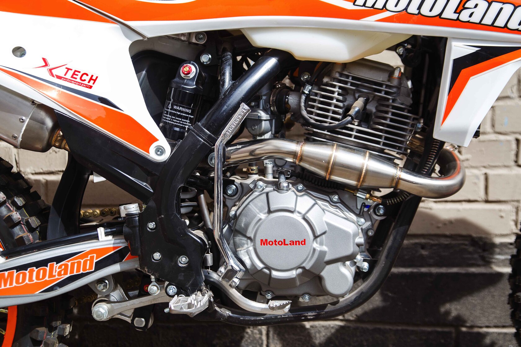 Представляем вам мотоцикл Motoland 250 SX250 . Он подойдет для новичков в мотокроссе и участников любительских соревнований. Колеса диаметром 21/18 идеально подходят для езды по бездорожью, а также по мягкому и средней жесткости грунту. Подвеска GPX позволяет с легкостью преодолевать ухабы, ямы и другие неровности. Мотоцикл оснащен LCD- приборной панелью, прямоточным глушителем, механической пятиступенчатой коробкой передач и двигателем ZONGSHEN 172FMM-3А мощностью 21 лошадиная сила, который способен развивать скорость до 120км/ч. За счет формы, дизайна и цвета пластика SX250 модель внешне похожа на мотоциклы марки KTM. У нас Вы можете купить этот мотоцикл с бесплатной доставкой по РФ и гарантией до года. Также его можно приобрести в рассрочку или в кредит.
