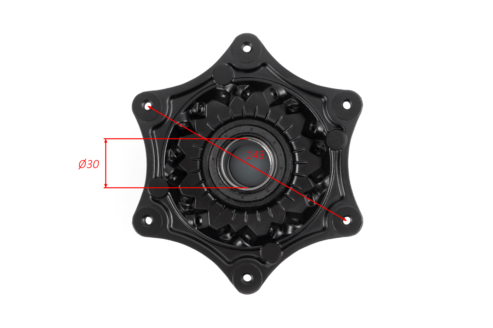 • Передняя ступица в сборе черного цвета для эндуро мотоциклов типа KTM с рамой K8 2017-2023 годов. Полная готовая к установке конструкция с установленными подшипниками 6906. Обеспечивает надежное крепление колеса, тормозного диска и спиц. Прямая замена оригинальной детали.