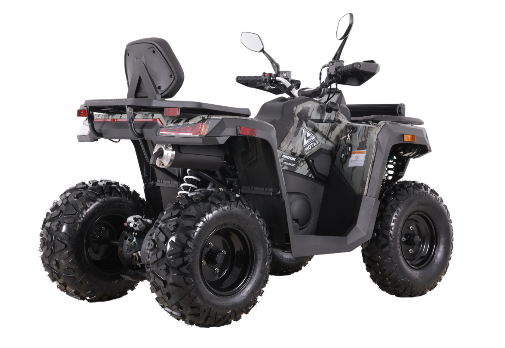 MOTAX GRIZLIK T250 BASIC предлагает множество функций для повышения безопасности и удобства эксплуатации. Защита рук и зеркала заднего вида обеспечивают дополнительную защиту для водителя, а наличие поворотников и стоп-сигналов делает квадроцикл более заметным на дороге.