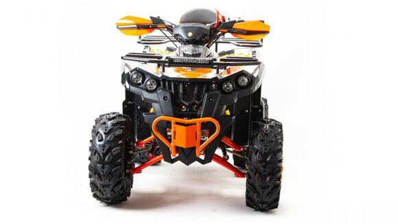 Комплектация Багажник: Сзади и спереди; Лебедка: Есть (управление кнопками на руле); Светодиодные фары головного света (ближний-дальний свет), задний габарит/стоп-сигнал, поворотники, «аварийка»