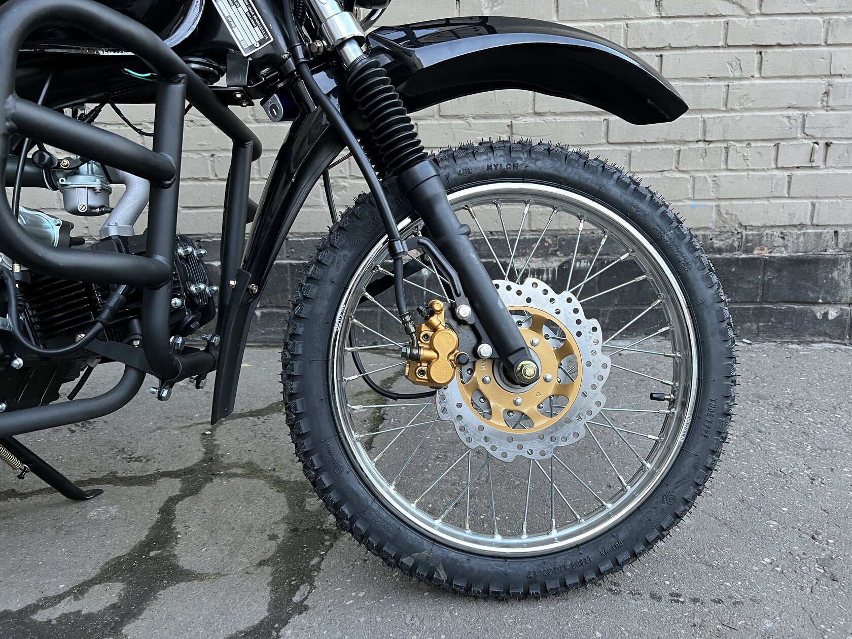 Электрика Светодиодная фара, электростартер, замок зажигания, АКБ(12В, 4Ач), полный комплект светотехники, аналоговая приборная панель.