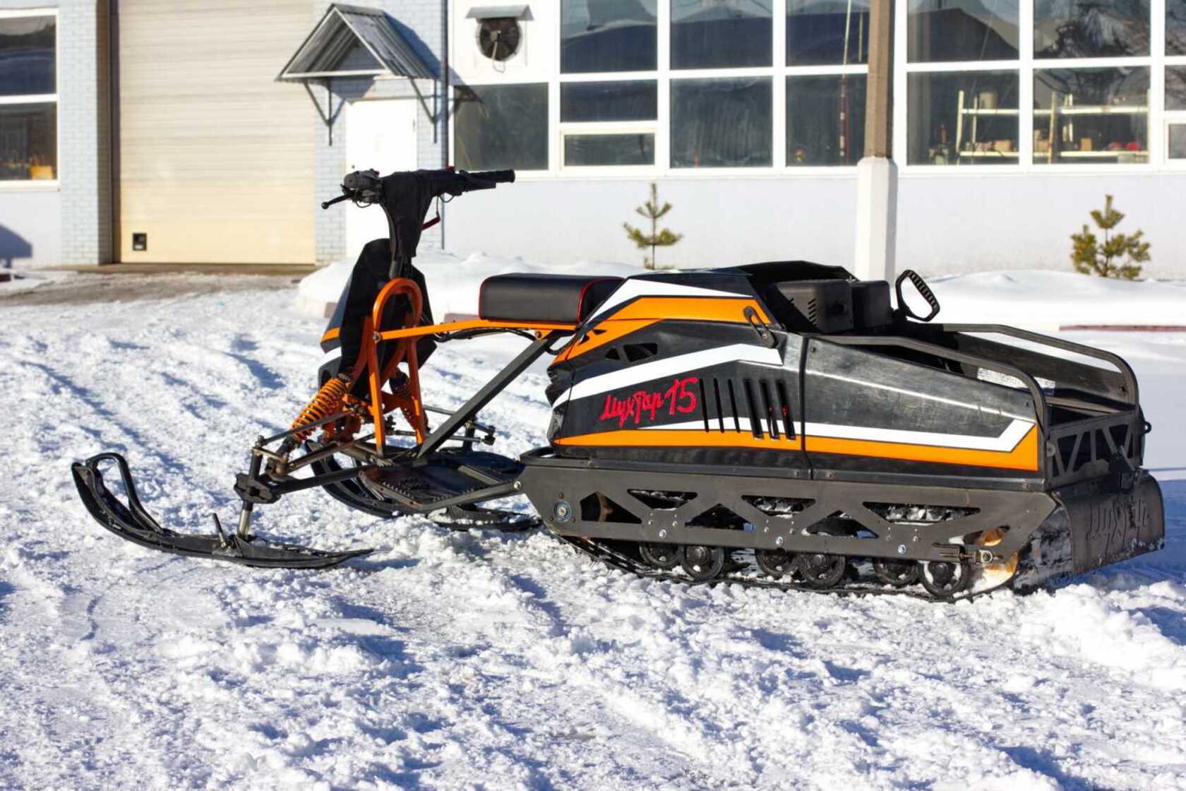 Утилитарный мотобуксировщик Мухтар 15, разработанный российскими инженерами, является универсальным модульным средством передвижения для эксплуатации в любое время года в условиях бездорожья. Эта техника станет вам настоящим помощником на охоте, рыбалке или в сельскохозяйственной деятельности.Мухтар 15 возможно использовать как в классической компоновке с рулевым управлением из саней (сани расположены сзади), так и с лыжным модулем, расположенным спереди, с помощью которого улучшается управляемость и повышается комфортность передвижения рейдера. Для эксплуатации летом достаточно заменить лыжи лыжного модуля на колёса! Так же предусмотрено дополнительная установка отвала для чистки снега или планировочных работ с легкими грунтами.Лыжный модуль построен на базе независимой многорычажной подвески, хорошо зарекомендовавшей себя на снегоходе Тунгус и SF с полной унификацией и взаимозаменяемостью деталей. Такая подвеска позволяет устойчиво проходить любые неровности без потери управляемости!При управлении мотобуксировщиком из саней, съёмный руль переносится на рулевую штангу. Так же мощная светодиодная фара устанавливается на лыжный модуль или переносится на мотобуксировщик при использовании техники без лыжного модуля.Мухтар 15 оснащен хорошо зарекомендовавшим себя двигателем Lifan объемом 420 куб.см. мощностью 15 л.с., с электростартером и ручным запуском. Трансмиссия реализована на легендарном вариаторе «Сафари» и реверс-редукторе «Буран». Трансмиссия и двигатель установлены на съёмную платформу, что облегчит владельцу перевозку и обслуживание. Привод на гусеницу осуществляется через усиленную 530 цепь с сальниковыми уплотнителями. Использование реверс-редуктора дает большое преимущество при разворотах либо в ситуациях, когда движение вперед затруднено.Высокопрочная рама изготавливается путём лазерной резки из цельногнутого листа металла толщиной 2,5 мм. Для гарантированной защиты металла от коррозии, металлические детали проходят через дробеструйную обработку и окрашиваются полимерной окраской. Длинная 2828 мм и широкая 500 мм гусеница Composit, обеспечивает большую площадь соприкосновения с поверхностью, что позволяет эффективно использовать всю мощность для выполнения задач любой сложности. В конструкции используется три катковые подпружиненные тележки с ограничителями переворота. Катки обрезиненные, с заглушками от попадания воды и грязи в подшипники. Для повышения проходимости в глубоком снегу возможно установить склизы