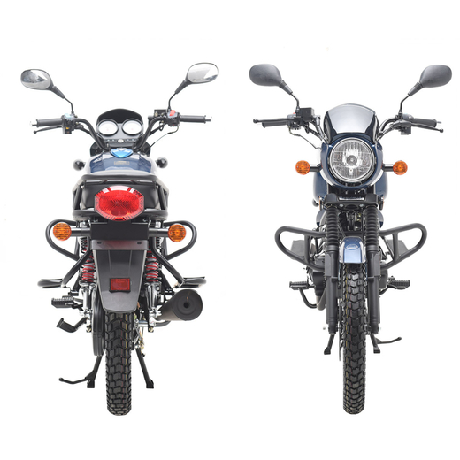Диски колёсные Спереди и сзади новая модель обрела литые колесные диски диаметром 17 дюймов. Колеса качественно окрашены в черный цвет. Универсальность мотоцикла подчеркивают туристические шины с протектором 60/40 (асфальт/грунт), размерностью: 100/90-17 спереди и 110/90-17 сзади.