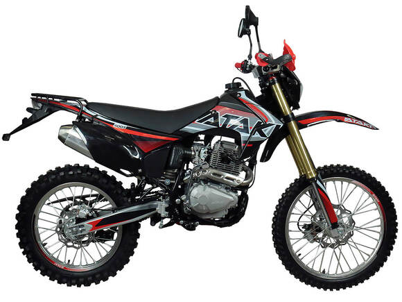 Мотоцикл ATAKI S003 300 (4T PR300) ПТС 21/18 (2024 г.) – современный и стильный дуал-спорт для городской езды и спортивных приключений. Оснащён одноцилиндровым 4-тактным двигателем ZONGSHEN PR300/ZS175FMM-5 с воздушным охлаждением и объёмом 271 см3. За подачу топлива отвечает карбюратор PD30. Мотор способен выдавать мощность в 24 л.с. Коробка передач механическая с 5 ступенями, имеет классическую схему 1-N-2-3-4-5. Ёмкость бака 9 литров. На мотоцикле используются колёса 21 дюйм спереди и 18 дюймов сзади. Подвеска спереди представлена телескопической вилкой перевёрнутого типа длиной 880 мм. Подвеска сзади – моноамортизатор длиной 380 мм с 2 положениями по высоте. Тормоза – дисковые гидравлические.Имеет цифровую приборную панель и светодиодную фару. Модель обладает ПТС и подходит для использования на дорогах общего пользования. Габариты мотоцикла 2100×810×1180 мм. Высота по седлу 900 мм. Вес 119 кг.
