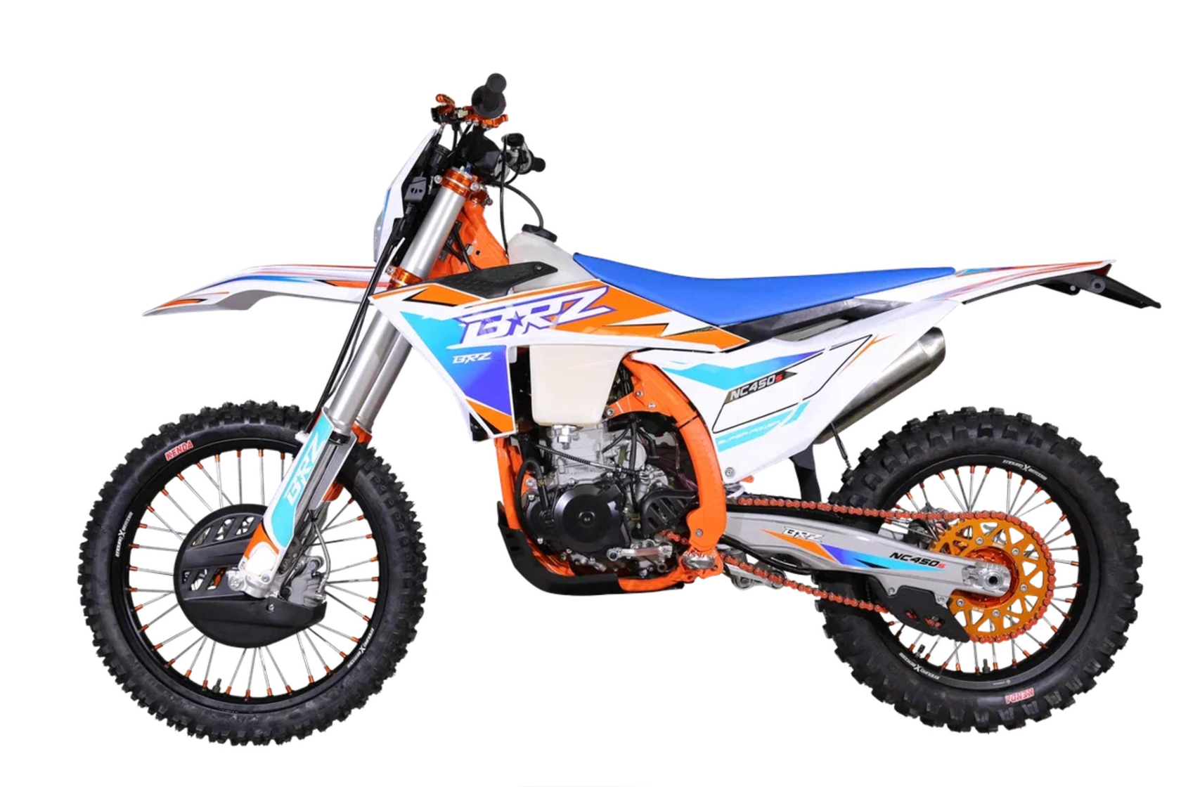 Полноразмерный мотоцикл BRZ MX8 NC450s 24, Колесная база 1490 мм. Мотор жидкостного охлаждения КПП на 6 передач.Характеристики:Кубатура – 450cc