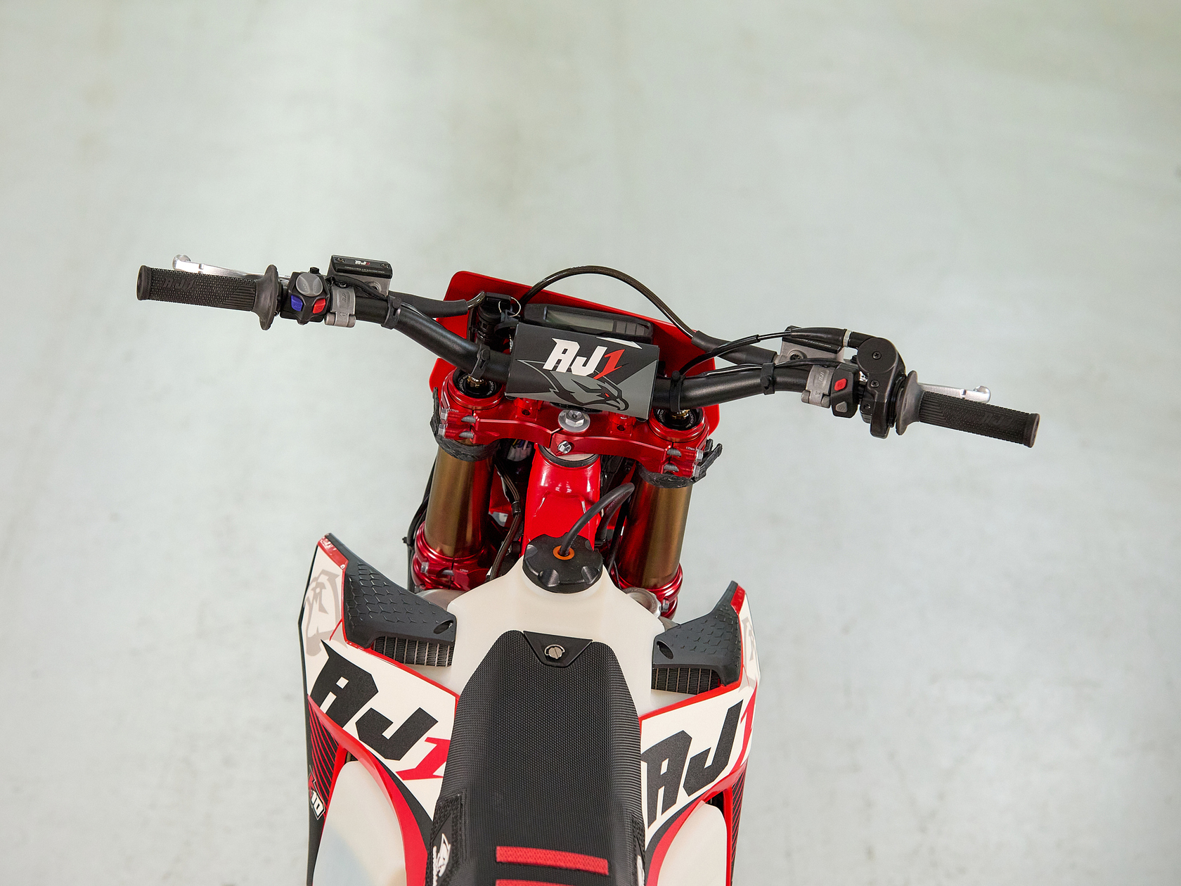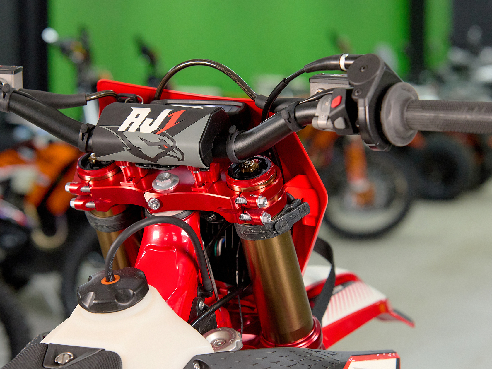 Подробнее о AX300Модифицированная подвеска разработанная AJ1 совместно с HTW, регулировать которую можно теперь без применения инструментов, «на ходу». Двухкамерная передняя вилка с закрытым картриджем (DCC) серии AJ1-T10 с диаметром пера 48 мм и длиной 940 мм, в которой используются двукомпонентные сальники SKF Италия, а также высококачественные направляющие от японской фирмы DID ЯпонияМоноамортизатором HTW T10 регулировка без инструмента с системой PDSНовые фрезерованные траверсы со всеми регулировками а также руль переменного сечением из высокопрочного алюминиевого сплава марки 7075-T6.Новая запатентованная конструкция воздушного фильтра AJ1-Pro Red. Предварительно пропитанный смазкой - фильтр специально создан для обеспечения максимального потока воздуха, сделанный из негорючего материала.Новые радиаторы и дефлекторы воздуха позволили повысить набегающий поток и улучшить охлаждение при движении.Широкие фрезерованные подножки AJ1 из алюминиевого сплава, со сменными шипами из нержавеющей стали.Обода из алюминия 7050-T6 в стандартной комплектации имеют подшипники NSK, 4-мм спицы из нержавеющей стали и алюминиевыми ниппелями в сочетании с новыми шинами AJ1 soft compound обеспечивает постоянное сцепления колес в разных дорожных условиях.Размер колес: перед – 80/100-21 зад – 120/100-18Новый алюминиевый маятник без прогрессии + направлющими с низким коэффициентом трения обеспечивает лучший контроль и экономию веса, необходимую на треке и в горах.Запатентованная тормозная система AJ1 зарекомендовавшая себя, как лучшая в классе, великолепно работающая с тормозными дисками нового дизайн и синтетическими спеченными тормозными колодками Elig Тайвань. Спереди установлен двухпоршневой суппорт AJ1 в сочетании с диском диаметром 260 мм. Сзади – однопоршневой суппорт с диском диметром 220 ммВ стандартную комплектацию входит новая алюминиевая складывающаяся боковая подставку нового дизайна, а также фирменное сиденье AJ1Anti Skid, выполненным из нескользящего материала со специальными прорезиненными вставками.Ведомая звезда AJ1 520 на 52 зубаВыхлопная титановая система AJ1 с Power Bomb и DB-Killer (съёмный) легче на 1 кг предыдущих выхлопных систем от AJ1