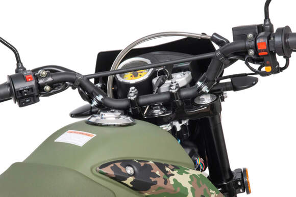Камуфляжная расцветка подчеркивает брутальный характер мотоцикла, делая его не только функциональным, но и стильным. Это техника, которая выделяется на фоне других и говорит о вашем бесстрашии.