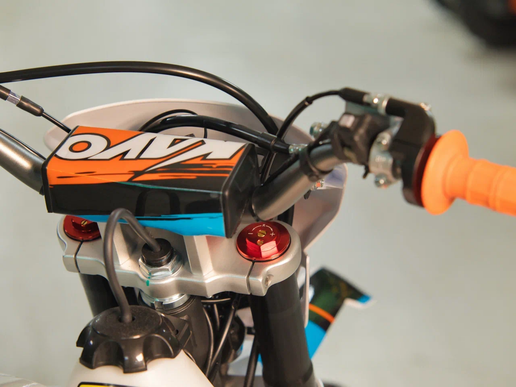 Мотоцикл KAYO K1 250 MX – “народная” версия внедорожного мотоцикла от компании KAYO. Идеальный снаряд для внедорожного экстрима, представляющий собой оптимальный баланс производительности и технической оснащённости, поэтому он идеально подходит как новичкам, так и опытным райдерам. Удобный, простой и надёжный мотоцикл, который полностью оправдывает свою цену.Мотоцикл оснащён одноцилиндровым 4-тактным двигателем воздушного охлаждения (ZONGSHEN ZS172FMM) объёмом 249 см3, который обеспечивает высокую мощность (21 л.с.) и крутящий момент, что позволяет развивать большую скорость и с лёгкостью преодолевать трассы со сложным рельефом. Карбюраторная система подачи топлива с карбюратором NIBBI PE30 обеспечивает бесперебойную работу техники в самых жёстких условиях эксплуатации, простоту и лёгкость в обслуживании, а также неприхотливость к качеству топлива. Аппарат оснащён 5-ступенчатой механической коробкой передач с классической схемой “1-N-2-3-4-5”.Усиленная рама из хром-молибденового сплава и подвеска позволяют эффективно амортизировать удары при езде по неровностям и препятствиям на трассе. Передняя подвеска телескопическая вилка перевёрнутого типа от фирмы KKE длиной 800 мм, задняя — нерегулируемый моноамортизатор 360 мм, рассчитанный на высокие нагрузки до 900 LBS, также произведённый компанией KKE. Мотоцикл оснащён классическими спицованными колёсами диаметром 18 и 21 дюйм. Колёса имеют усиленные обода из алюминиевого сплава и буксаторы. Эффективное и безопасное замедление с любых скоростей обеспечивают гидравлические дисковые тормоза.Мотоцикл достаточно компактен и имеет вес всего в 105 кг, поэтому он комфортен в эксплуатации одновременно и для мужчин среднего телосложения, и для девушек. Аппарат оснащён системой запуска двигателя при помощи кнопки электростартера или при помощи рычага кик-стартера.Высококачественная износостойкая резина с развитым протектором отлично держит дорогу на различных типах покрытия и в самых разных поворотах. Сиденье эргономичной формы покрыто антискользящим материалом.K1 250 MX сочетает в себе отличные технические характеристики, комфорт и надёжность, что позволяет вам ощутить настоящую свободу на любой трассе