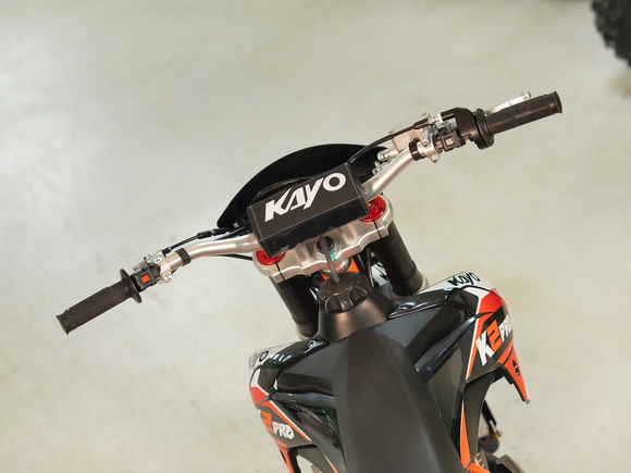 Кроссовый мотоцикл KAYO K2 Pro – идеальный снаряд для внедорожного экстрима, представляющий собой оптимальный баланс производительности и технической оснащённости, поэтому он идеально подходит как новичкам, так и опытным райдерам. Он является улучшенной версией “народного” мотоцикла KAYO K1. Удобный, простой и надёжный мотоцикл, который полностью оправдывает свою цену.Мотоцикл оснащён одноцилиндровым 4-тактным двигателем воздушного охлаждения (ZONGSHEN CB300/ZS175FMM) объёмом 271 см3, который обеспечивает высокую мощность (24 л.с.) и крутящий момент, что позволяет развивать большую скорость и с лёгкостью преодолевать трассы со сложным рельефом. Карбюратор NIBBI PE30 обеспечивает бесперебойную работу техники в самых жестких условиях эксплуатации, простоту и лёгкость в обслуживании, а также неприхотливость к качеству топлива. Аппарат оснащён 5-ступенчатой механической коробкой передач с классической схемой “1-N-2-3-4-5”.Усиленная рама из хром-молибденового сплава и подвеска позволяют эффективно амортизировать удары при езде по неровностям и препятствиям на трассе. Передняя подвеска — регулируемая телескопическая вилка перевёрнутого типа от фирмы KKE длиной 800 мм, задняя — регулируемый моноамортизатор 420 мм с прогрессией, рассчитанный на высокие нагрузки, также произведённый компанией KKE. Мотоцикл оснащён классическими спицованными колёсами диаметром 18 и 21 дюйм. Эффективное и безопасное замедление с любых скоростей обеспечивают гидравлические дисковые тормоза.Мотоцикл достаточно компактен, поэтому он комфортен в эксплуатации одновременно и для мужчин среднего телосложения, и для девушек. Байк оснащён системой запуска двигателя при помощи кнопки электростартера или при помощи рычага кик-стартера.Высококачественная износостойкая резина с развитым протектором отлично держит дорогу на различных типах покрытия и в самых разных поворотах. Сиденье эргономичной формы покрыто антискользящим материалом.K2 Pro сочетает в себе отличные технические характеристики, комфорт и надёжность, что позволяет вам ощутить настоящую свободу на любой трассе.
