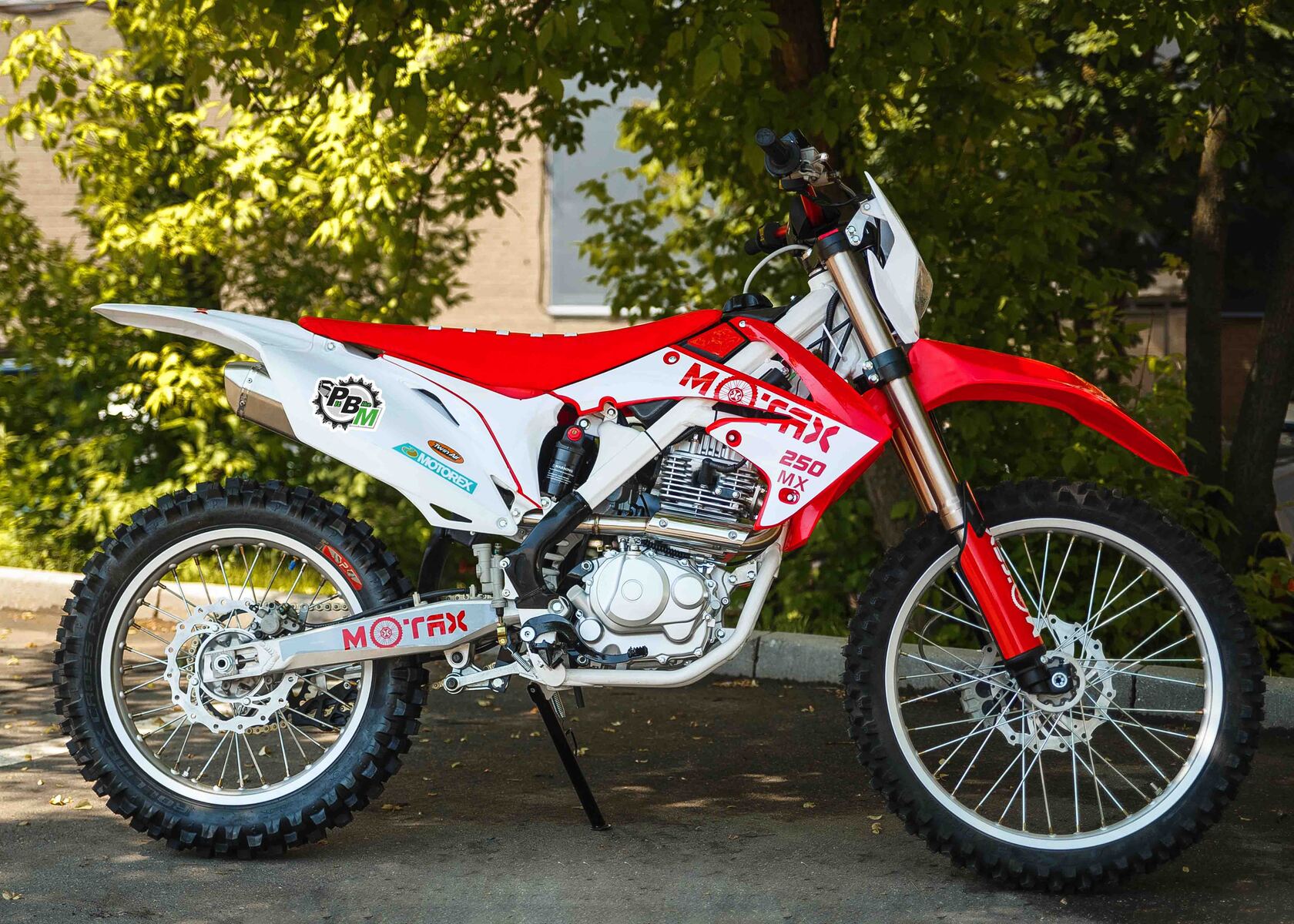 Мотоцикл Motax MX 250 это новинка весны 2021 года Надёжная техника из самых популярных компонентов оснащена Двигателем ZONGSHEN 165FMM с кикстартером и электростартером Мощностью 16 Л.С. на двигателе установлен Карбюратор NIBBI PE28.Это полноразмерный кроссовый мотоцикл. Что позволяет комфортно себя чувствовать райдерам разного роста.За счет сбалансированной базы мотоцикл имеет отличную управляемость, а конструкция рамы и особенности настройки подвески способствуют максимальному поглощению неровностей дорожного покрытия, а так же усиленная прогрессия на игольчатых подшипниках.Алюминиевые обода c буксаторами, усиленными спицами и ступицами. На кроссовой резине Yuanxing 80/100-21 / 100/90-18На мотоцикле установлена обновлённая тормозная система аналог «brembo» с медными колодками , что обеспечивает отличные тормозные характеристики. Особенностью заднего тормоза является, лапка верхнего расположения с эксцентриковой регулировкой.Выпускной патрубок имеет крепления на пружинах для снижения вибрации. Глушитель с уникальным дизайном прямоточного типа, полностью алюминиевый для облегчения веса.