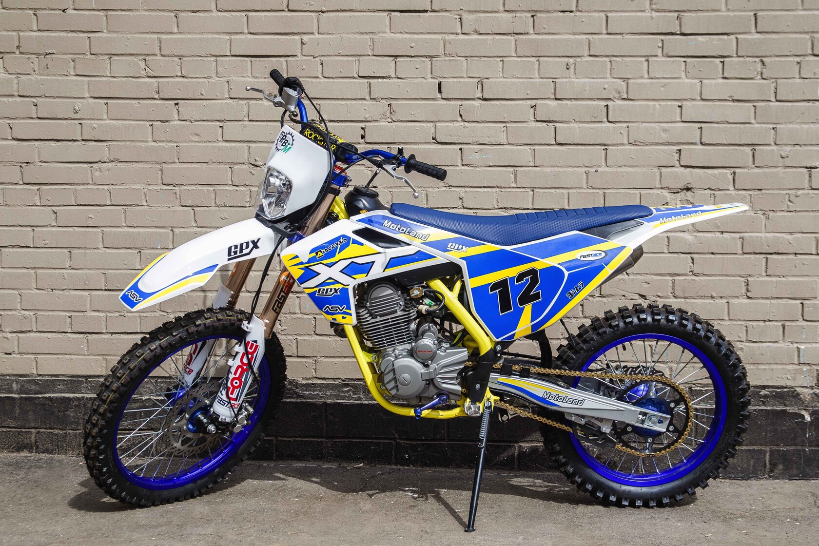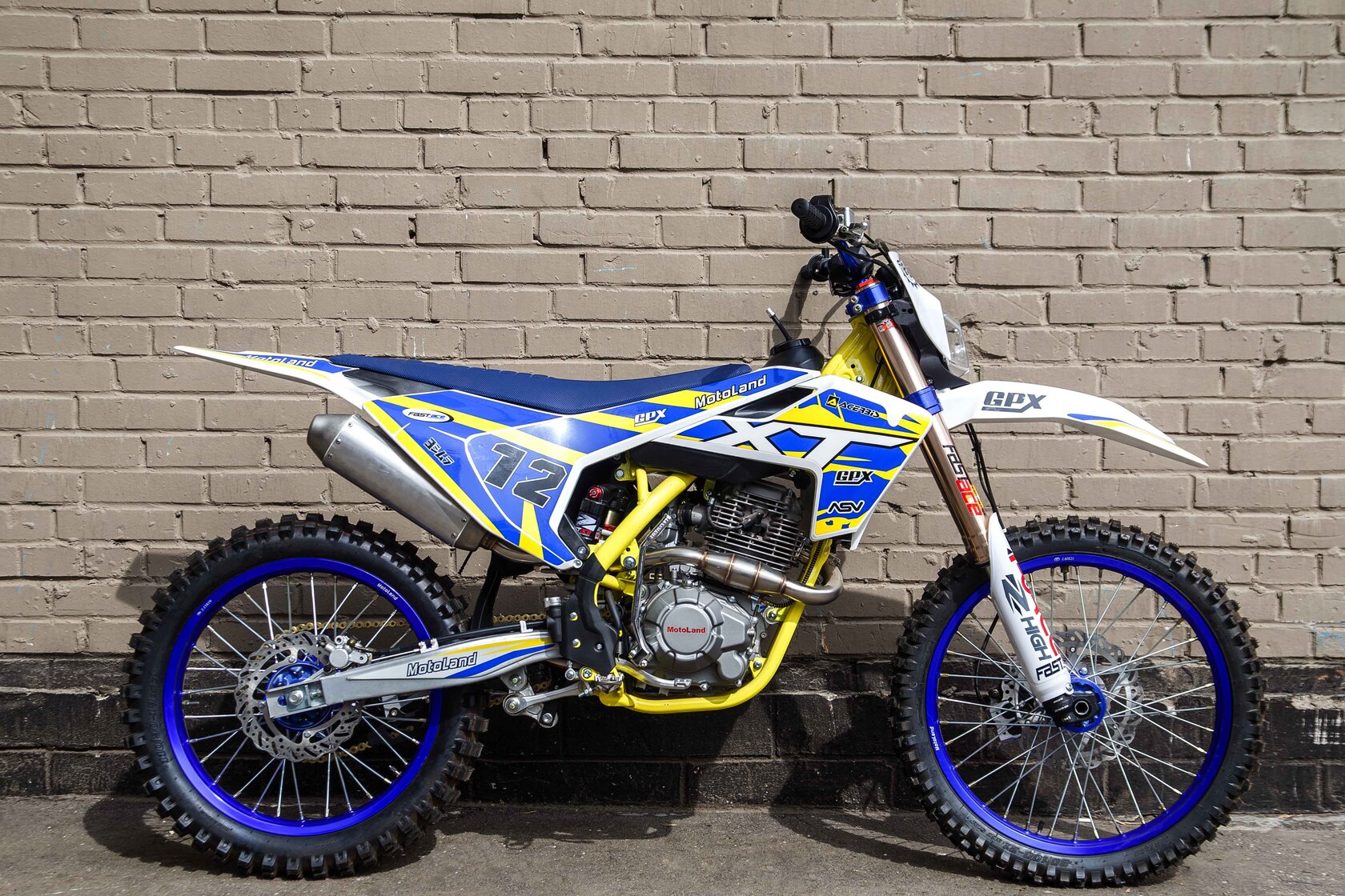 Мотоцикл MOTOLAND XT250 ST-FA (колеса 21" / 19") – обновленная модель компании MotoLand. С улучшенной подвеской Fast Ace, имеющей настройки сжатия и отбоя переднего и заднего амортизатора. Позволяет передвигаться не только по пересеченной местности но и по дорогам общего пользования Оснащен дополнительным освещением и подворотниками. Мощный 4-х тактный двигатель ZONGSHEN 172FMM мощностью 21 л.с. позволит выжать из мотоцикла максимум. Запуск двигателя производится как кикстартером так и электростартером
