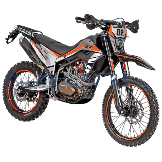 Новинка 2024 года: Мотоцикл Regulmoto CR-X 300Для Regulmoto CR-X 300 нет плохих дорог!Представляем долгожданную новинку 2024 года — мотоцикл Regulmoto CR-X, созданный на базе легендарной Honda CRF300L. Этот мотоцикл оснащен мощным двигателем Zongshen PR300 с двумя клапанами на цилиндр и карбюратором Nibbi Racing PE30, что обеспечивает отличную производительность и надежность.Подвеска и управление:• Передние амортизаторы с регулировкой и зеркалом 41 мм для точной настройки под любые дорожные условия.
