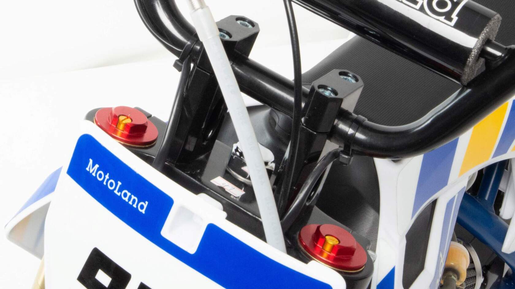 Питбайк Motoland TCX125 14/12 идеален для поездок по грунтовым дорогам и бездорожью. Хорошо чувствует себя на мягком и среднем грунте, разгоняется до 90 км/ч. Оснащён спортивными траверсами, весит всего 70 кг.Питбайк прост в управлении и не требует специального ухода, подойдёт как новичкам, так и любителям мотокросса.Питбайка отличный узнаваемый дизайн. Конструкция подчёркивает неуступчивый спортивный характер, который не остановится ни перед одним препятствием.Комбинированный прочный пластик не ломается при сгибании.Передняя подвеска — телескопическая вилка перевёрнутого типа (с регулировкой по давлению воздуха), которая отлично подходит для преодоления ям, и других неровностей плохих дорог или их отсутствия. Задняя подвеска маятниковая с моноамортизатором. Мотоцикл оснащён одноцилиндровым четырёхтактным двигателем с воздушным охлаждением. Надёжный мотор 152FMI мощностью 8 л. с. и объемом 125 см³ , установленный на усиленной стальной раме, коробка передач полуавтоматическая, четырёхступенчатая.Тормоза дисковые, передний тормозной суппорт двухпоршневой, задний — однопоршневой.Питбайк относится к недорогим моделям, которые при должной эксплуатации работают без сбоев. Не занимает много места в гараже. При необходимости в нём легко сменить любую повреждённую деталь.