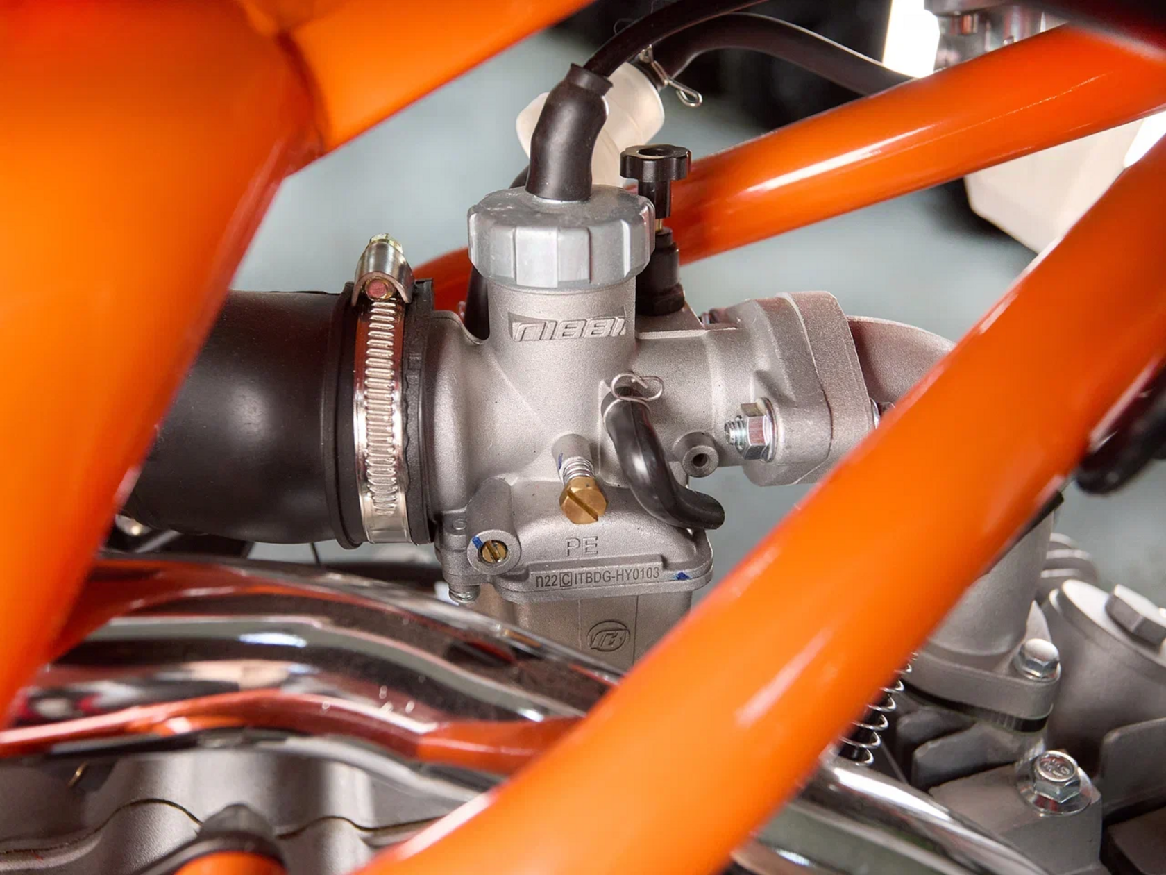 Питбайк KAYO Basic K125EM KRZ – идеальный снаряд для наработки первого опыта в мотокроссе и эндуро, который можно использовать на лёгких кроссовых трассах и дорогах с различным покрытием. Удобный, простой и надёжный мотоцикл, который полностью оправдывает свою цену.Одноцилиндровый 4-тактный двигатель воздушного охлаждения объёмом 125 см3, выдаёт 9 л.с. Карбюратор NIBBI PE19 обеспечивает бесперебойную работу техники в самых жёстких условиях эксплуатации, простоту и лёгкость в обслуживании, а также неприхотливость к качеству топлива. Питбайк оснащён механической 4-ступенчатой коробкой передач с формулой “N-1-2-3-4”.Мотоцикл имеет вес всего 72 кг. Усиленная рама из хром-молибденового сплава и подвеска позволяют эффективно амортизировать удары при езде по неровностям и препятствиям на трассе. Передняя подвеска — телескопическая вилка перевёрнутого типа длиной 770 мм, задняя — моноамортизатор длиной 360 мм. Оба компонента подвески являются нерегулируемыми. Рама и пластик являются собственной разработкой производителя. Мотоцикл оснащён классическими стальными спицованными колёсами диаметром 17 дюймов спереди и 14 дюймов сзади. Эффективное и безопасное замедление с любых скоростей обеспечивают гидравлические дисковые тормоза.Высококачественная износостойкая резина с развитым протектором отлично держит дорогу на различных типах покрытия. Байк оснащён как системой запуска двигателя при помощи кнопки электростартера, так и рычагом кик-стартера. Питбайк имеет вместительный топливный бак на 5,5 л, что гораздо больше, нежели у других байков этого класса.Питбайк оснащён стальной защитой картера и яркой светодиодной линзованной фарой.Если вы ищете послушный, компактный, шустрый и красивый питбайк, считайте, что вы его нашли. Это один из лучших мотоциклов для обучения и первых шагов в эндуро и мотокроссе. Он отлично подойдёт как для гонок на трассе, так и для покатушек по пересечённой местности.