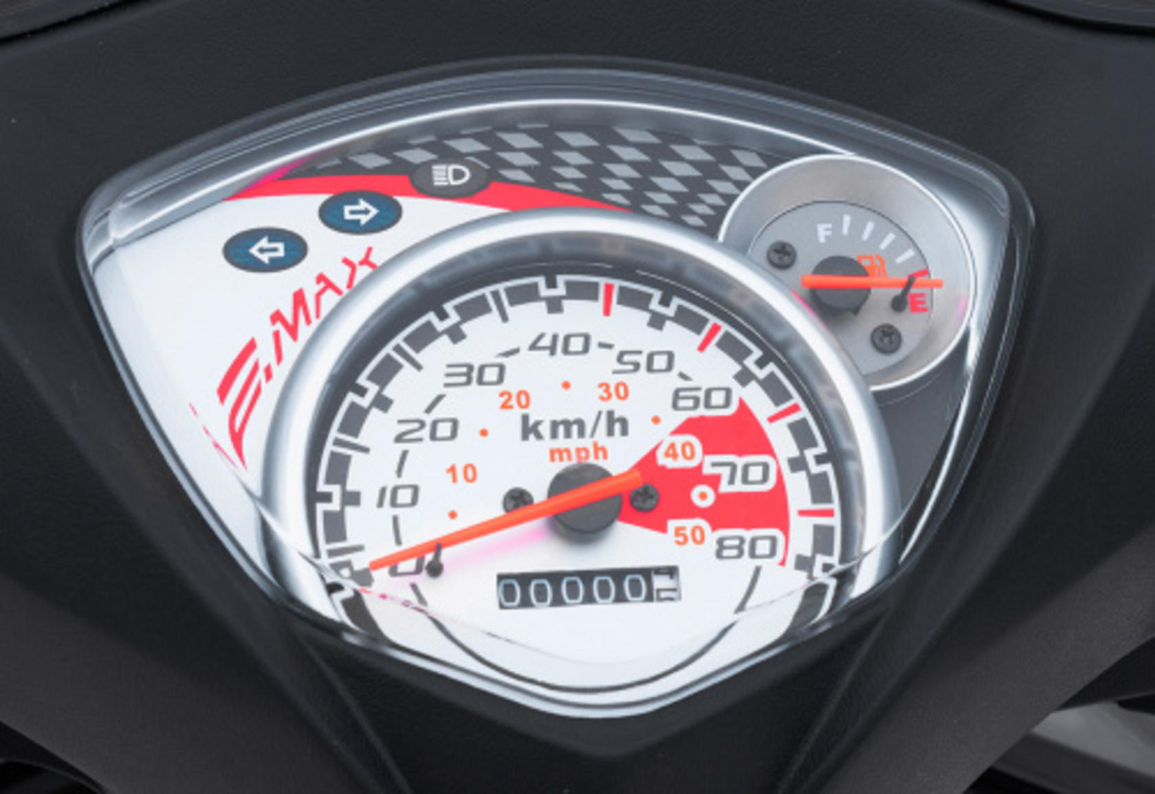 Комплектация За безопасность эксплуатации отвечают дисковый тормоз на переднем колесе и традиционный «барабан» в ступице заднего колеса. Небольшой багажник сзади предоставляет возможность установки кофра для перевозки или хранения мотошлема. Зеркала заднего вида, центральная подножка.