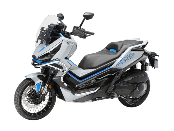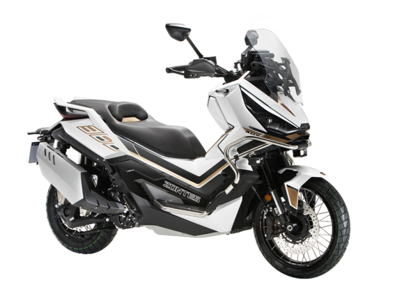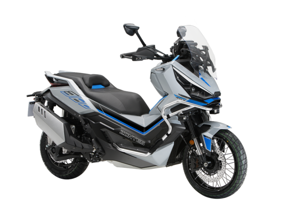 Скутер ZONTES ZT368-G – максискутер двойного назначения, готовый пронестись по улицам города за его пределы и отправиться по грунтовым тропам прокладывать свой маршрут туда, куда вам потребуется. Регулируемая подвеска с перевёрнутой телескопической вилкой спереди обеспечит отличную управляемость и устойчивость в любых условиях.Силовая установка представлена одноцилиндровым 4-тактным двигателем. Двигатель имеет объём 368 см³ и обеспечивает мощность в 38,8 л.с. Оснащён инжектором BOSCH, системой жидкостного охлаждения и вариатором. Запуск двигателя осуществляется с помощью бесключевого доступа.Ёмкость топливного бака 17,5 литра.Колёса имеют диаметр 17 дюймов спереди и 14 дюймов сзади. Для подвески спереди используется телескопическая вилка перевёрнутого типа, а сзади установлены 2 гидравлических амортизатора. Гидравлические дисковые тормоза произведены компанией J.JUAN, входящей в холдинг BREMBO. Мотоцикл также оснащён 2-канальной ABS-системой, противобуксовочной системой TCS System и датчиками давления в шинах.ZT350-G оборудован яркой LED-фарой, мультимедийной приборной панелью с TFT-дисплеем, имеются 2 USB-порта.Габариты скутера 2230х925х1290 мм. Колёсная база 1560 мм. Высота по седлу 795 мм. Вес 198 кг.