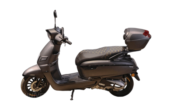Скутер Motoland Tank - отличный вариант для загородных поездок и рыбалки: имеет множество дополнительных защит и закрытий, колеса 12" с резиной для поездки по грунтовой дороге и асфальту.Брутальный внешний вид и черный цвет делает его не похожим на другие скутера. Дополнительные ДХО, светодиодные поворотники и стоп-сигнал.На скутере установлен одноцилиндровый четырехтактный двигатель 157 QMJ мощностью 10 л/с и рабочим объемом 150 см3 с принудительным охлаждением, что позволяет ему не перегреваться даже в сильную жару. Система запуска кикстартер + электростартер. Трансмиссия - вариатор, не требующий манипуляциях с переключением скоростей. Это очень удобно при эксплуатации и не вызывает сложностей, просто сел, повернул ручку газа и поехал. Все тормоза - дисковые гидравлические.Подвеска - передняя вилка телескопическая и два задних амортизатора. Колесные диски литые алюминевые, на которые установлены качественные покрышки 120/70-12".Выдерживает нагрузку до 150 кг, что позволяет перевозить одного пассажира. Под сиденьем есть большое багажное отделение + площадка для крепления дополнительного кофра. Приборная панель — электронная, с очень крупными, легко читаемыми цифрами и часами; со всеми необходимыми указателями.Габариты: 1900 х 710 х 1170 мм. (без учета зеркал)