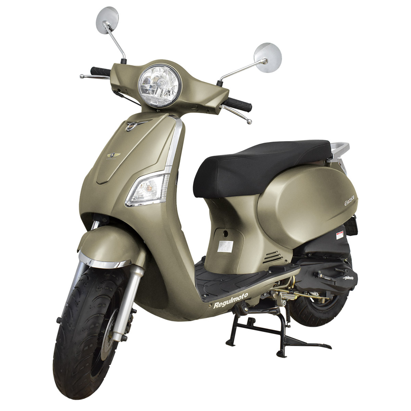 Питбайкмаркет представляет вниманию поклонников утилитарной мототехники скутер Regulmoto Estate 125 (LJ125T-V), который Вы можете приобрести в нашем мотосалоне и интернет-магазине с доставкой до терминала транспортной компании-перевозчика в Вашем регионе.Данная модель скутера производства китайской компании Ningbo Longjia Motorcycle широко известна европейским поклонникам малокубатурной мототехники. Под именем Longjia 125T-V завоевал определенную популярность в Великобритании, Италии, Польше и других странах ЕС. Потребителей привлекают отличный внешний вид скутера, высокое качество компонентов и качественная сборка, доступная цена и невысокая стоимость сервисного обслуживания.Дизайн скутера выполнен в узнаваемом ретро-дизайне, однако множество используемых компонентов мототехники соответствуют актуальным тенденциям мотоиндустрии. Литые колесные диски с 12-дюймовыми широкими покрышками, надежные дисковые тормоза на переднем и заднем колесах, электростартер, подвеска, представленная телескопической вилкой спереди и гидравлическим амортизатором сзади, – все это говорит о большем уровне безопасности и комфорта при повседневном использовании скутера.Скутер Regulmoto Estate 125 оснащается 4-тактным двигателем с воздушным охлаждением. В паре с карбюратором мотор рабочим объемом 124 см3 демонстрирует 8,8 максимальной мощности при 8000 оборотах/мин; максимальная развиваемая скорость составляет 90 км/ч. На скутере реализована автоматическая трансмиссия с ременным вариатором, простая и надежная в эксплуатации конструкция. Дополнительное оборудование представлено полным комплектом светотехники, приборной панелью, зеркалами заднего вида.Легкость управления, надежность и неприхотливость Regulmoto Estate 125 будут на руку, как начинающим, так и опытным водителям. Технические характеристики оборудования и широкие эксплуатационные возможности скутера позволяют ему стать отличным вариантом выбора надежного транспортного средства для ежедневных поездок в черте города и за его пределами.