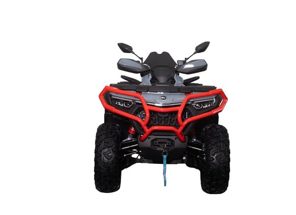 Лимитированная версия CFORCE 800 HO EPS LTD! Представляем вам эту новинку в уникальной расцветке: благородный серый с яркими красными элементами и силовыми бамперами, созданную для тех, кто ценит стиль и производительность.Неизменно мощный и надежный, этот квадроцикл обладает всеми ключевыми характеристики CFORCE 800 HO NEW. Однако эта версия оснащена 27-дюймовыми шинами STAG, установленными уже на 14” диски с бедлоками, что обеспечивает уверенную езду по любой поверхности на высоких скоростях, с возможностью быстрого изменения давления в колесе до минимального значения, не опасаясь «разбортировки» и тем самым повышая проходимость на серьезном бездорожье.Но самое волнующее – лимитированная версия CFORCE 800 HO EPS NEW LTD комплектуется революционным 8” MMI-дисплеем с тачскрином и оффлайн-картами России, что позволит исследовать окружающие территории с еще большей уверенностью и комфортом!К базовым функциям, которые были на 7” экране, таким как выбор языка, быстрая смена режимов эксплуатации добавились: оффлайн-карта местности, голосовое управление, обновление через Wi-Fi и многое другое.Таким образом, благодаря новому 8” MMI-экрану райдер cможет записывать свои маршруты и треки онлайн*. А Apple CarPlay позволит транслировать любые установленные на телефоне навигационные программы: Яндекс Навигатор, Maps.Me, Guru Maps и другие, а также самые распространённые приложения, которые поддерживаются в Apple CarPlay, например, Яндекс Музыка и т.п. Кроме того, через Bluetooth можно подключить телефон или планшет, а также 2 гарнитуры (водителя и пассажира).Но даже при отсутствии интернет-соединения с помощью оффлайн-карт квадроциклист может смотреть местность, по которой он передвигается и видеть свое местоположение.*Бесплатный пробный период для карт: 1 год для онлайн и 3 года для оффлайн-карт. Продлить этот период можно, оплатив 19 долларов за оффлайн и 39 долларов за онлайн+оффлайн карты на 1 год через PayPal. В случае неоплаты в указанные сроки все карты, ранее закачанные на устройство, остаются доступными, но не обновляются.Основные характеристики остаются теми же, что и у CFORCE 800 HO EPS NEW.На CFORCE 800 HO EPS LTD допускается выезд на дороги общего пользования. Дополнительные преимущества:– Абсолютно новая платформа третьего поколения G3