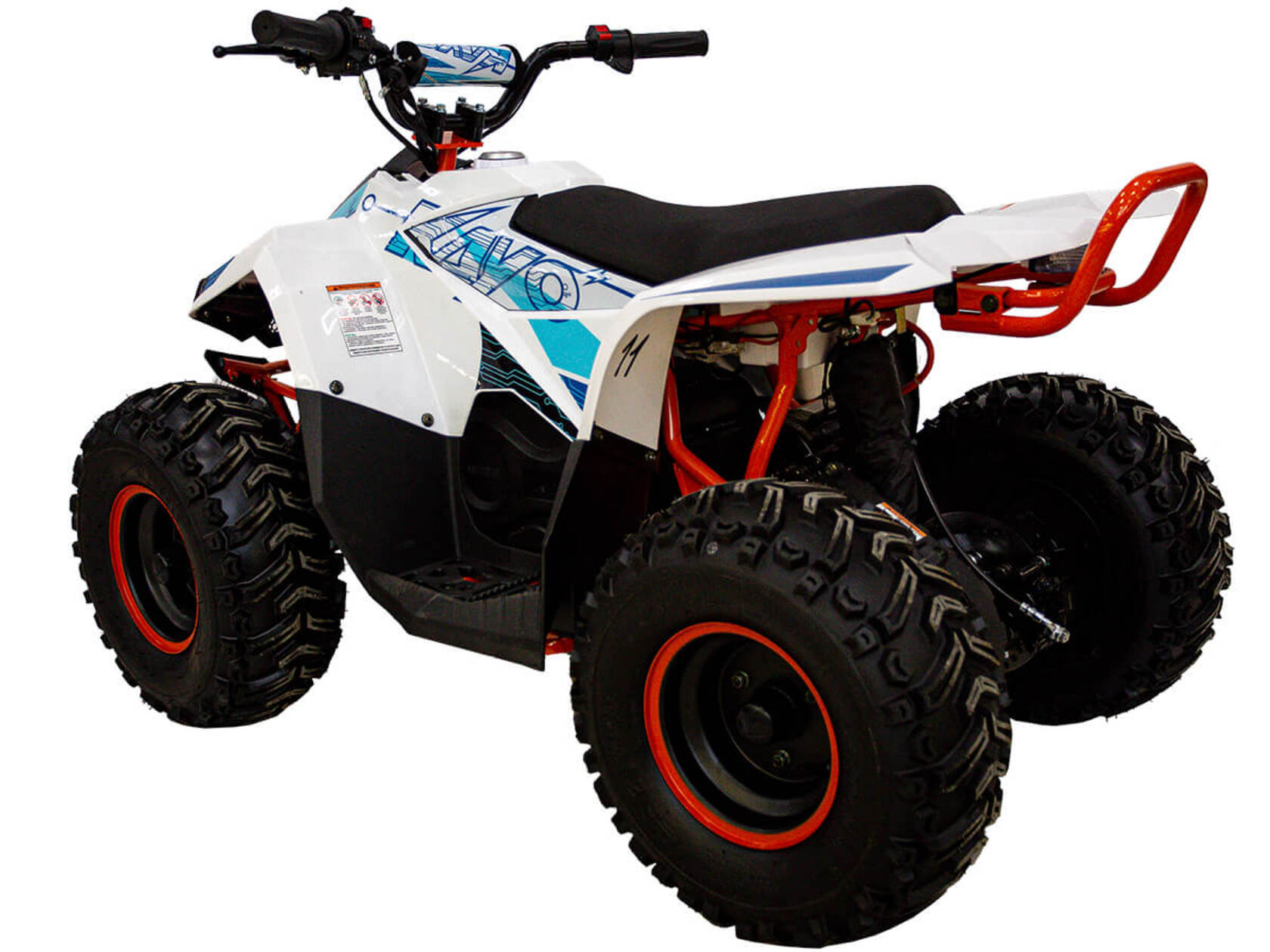 Квадроцикл KAYO EA70 – мощная внедорожная техника для весёлых и безопасных заездов на природе. Подходит для детей от 4 до 8 лет.Оснащён бесщёточным электродвигателем мощностью 500 Вт. Обеспечивает плавную и бесшумную езду без выхлопных газов. Свинцово-кислотный аккумулятор 48V20AH обеспечивает запас хода 50 км. Полная зарядка аккумулятора занимает около 8 часов. Трансмиссия представлена 3-ступенчатой коробкой с реверсом. Квадроцикл имеет систему плавного ускорения и торможения, что обеспечивает комфорт и безопасность во время заездов. Имеется регулируемый ограничитель максимальной скорости. Грузоподъёмность квадроцикла 50 кг.Диаметр колёс 7 дюймов. Подвеска спереди представлена нерегулируемым амортизатором длиной 250 мм, а сзади – регулируемым амортизатором длиной 235 мм. Сзади установлен гидравлические дисковые тормоза.Приборная панель представлена электронным дисплеем, куда выводится информация о скорости, заряде аккумулятора и километраже.Габариты квадроцикла 1250х780х820 мм, вес 93 кг.Внимание: поставляется в разобранном виде. Предназначен для самостоятельной сборки.