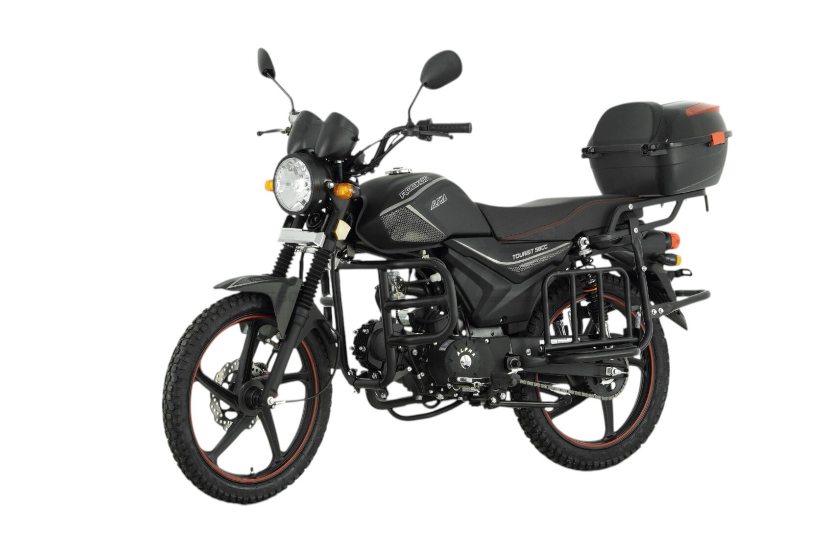 Мопед ROCKOT ALPHA TOURIST M-12 - всем известная классика в усовершенствованном исполнении. Надежный двигатель, в основу конструкции которого взяли мотор Honda CUB,имеет объем 125 куб.см. Воздушного охлаждения, установлен электростартер. Мопед оснащен эргономичным пассажирским местом и вместительным багажником.Сиденье отличается повышенной комфортностью, и уместиться на нем могут даже двое взрослых.Одним из главных плюсов модели является комфортность и плавность передвижения. Это позволяет совершать поездки на длительные расстояния. Посадка сиденья достаточно удобная и высокая, подставки для ног находятся там, где им следует быть, а руль имеет корректный плавный изгиб.Приборная панель отличается информативностью. Большие размеры тахометра и спидометра позволяют быстро считывать показатели в любых погодных условиях.Прекрасно подойдет для перемещения как в городском потоке, так и для путешествий за городом. Не требует регистрации.