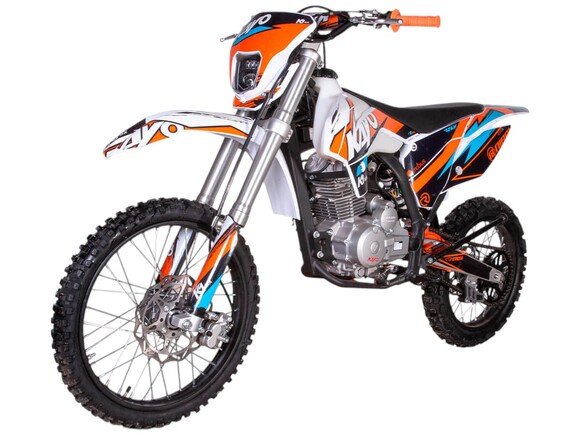 KAYO K1-L 150 MX 19/16 – лёгкий мотоцикл, представляющий собой оптимальный баланс производительности и технической оснащённости – нечто среднее между кроссовым мотоциклом и питбайком. Удобный, простой и надёжный мотоцикл, имеющий минимальную стоимость в своём сегменте.Мотоцикл оснащён одноцилиндровым 4-тактным двигателем воздушного охлаждения ZONGSHEN ZS161FMJ объёмом 150 см3, который выдаёт 12 л.с., что позволяет развивать большую скорость и с лёгкостью преодолевать трассы со сложным рельефом. Карбюраторная система подачи топлива с карбюратором PE28 обеспечивает бесперебойную работу техники в самых жёстких условиях эксплуатации, простоту и лёгкость в обслуживании, а также неприхотливость к качеству топлива. Аппарат оснащён 5-ступенчатой механической коробкой передач с классической схемой “1-N-2-3-4-5”.Компания KAYO самостоятельно разработала раму и пластик на данном мотоцикле.Передняя подвеска – телескопическая нерегулируемая вилка перевёрнутого типа длиной 800 мм, задняя — нерегулируемый моноамортизатор длиной 360 мм. Мотоцикл оснащён классическими спицованными колёсами диаметром 16 и 19 дюймов с прочными стальными ободами. Эффективное и безопасное замедление с любых скоростей обеспечивают гидравлические дисковые тормоза.Мотоцикл достаточно компактен и имеет вес всего 99 кг, поэтому он комфортен в эксплуатации одновременно и для мужчин среднего телосложения, и для девушек. Объём топливного бака составляет 6,7 л. Аппарат оснащён системой запуска двигателя при помощи кнопки электростартера или при помощи рычага кик-стартера.Высококачественная износостойкая резина с развитым протектором отлично держит дорогу на различных типах покрытия и в самых разных поворотах. Сиденье эргономичной формы покрыто антискользящим материалом. Яркая линзованная светодиодная фара позволяет кататься в тёмное время суток.KAYO K1-L 150 MX сочетает в себе отличные технические характеристики, комфорт и надёжность, что позволяет вам ощутить настоящую свободу на любой трассе.