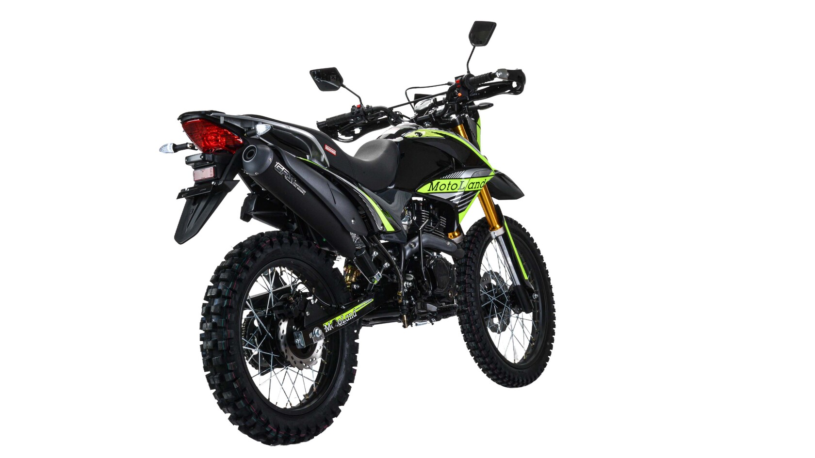 Прочность, мощь и надежность – вот ключевые характеристики кроссового мотоцикла 300 ENDURO ST NEON от бренда MOTOLAND. Этот байк представляет собой идеальное сочетание высоких технологий и безупречного дизайна, созданного для тех, кто стремится преодолевать любые трудности на дороге.Одной из важнейших особенностей этой модели является ее мощный двигатель с рабочим объемом 300 см3 и маркировкой 175 FMN PR5. С мощностью в 25 лошадиных сил и балансирным валом, этот мотоцикл готов преодолевать самые сложные трассы.Что касается трансмиссии, то здесь применена механическая передача с пятью ступенями и цепным ГРМ, что обеспечивает плавное переключение передач и высокую надежность в эксплуатации.Система охлаждения воздушно-масляная, что дает эффективное охлаждение двигателя в самых экстремальных условиях. А при запуске мотоцикла вы сможете воспользоваться как электростартером, так и кикстартером, делая его надежным в любой ситуации.Карбюратор PZ34 и свеча зажигания D8EA гарантируют оптимальную работу двигателя на любых режимах, а использование бензина с октановым числом 92 обеспечивает экономичный расход топлива.Этот мотоцикл оснащен спицованными металлическими колесами размером 90х100 R21 спереди и 110х100 R18 сзади, что обеспечивает отличное сцепление с дорогой и устойчивость на пересеченной местности.Приборная панель выполнена в формате LCD, отображая ярко и четко информацию о состоянии мотоцикла. А линзованная диодная фара и задний стоп-сигнал гарантируют безопасность в ночное время и обозначают ваше присутствие на дороге.