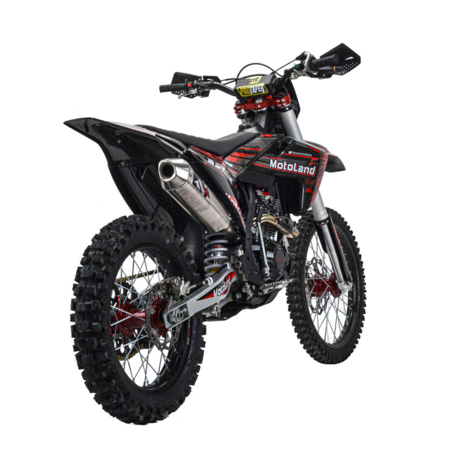 Мотоцикл Motoland XT300 STНадёжная техника оснащенная двигателем 175FMM (PR5 4 клапана) с водяным охлаждением. с кикстартером и электростартером, Мощностью 26 Л.С. на двигателе установлен Карбюратор NIBBI n34 с ускорительным насосом.Это полноразмерный кроссовый мотоцикл его база по осям составляет 1400 мм., и габаритами 2100х800х1120 мм. Высота по седлу составляет 950 мм. Передние и задний амортизаторы с регулировками.За счет сбалансированной базы мотоцикл имеет отличную управляемость, а конструкция рамы и особенности настройки подвески GPX способствуют максимальному поглощению неровностей дорожного покрытия, а так же усиленная прогрессия на игольчатых подшипниках. Алюминиевые обода c антибуксаторами, усиленными спицами и ступицами.На кроссовой резине 80/100-21 / 110/100-18На мотоцикле установлена обновлённая тормозная система обеспечивающая отличные тормозные характеристики. Глушитель с уникальным дизайном прямоточного типа, полностью алюминиевый для облегчения веса.