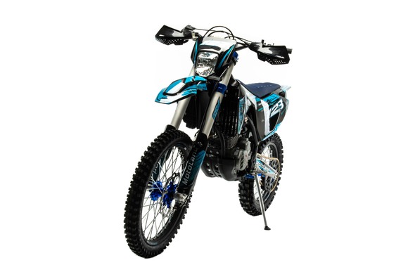 Современный дизайн мотоцикла подчёркивает спортивный характер байка.Установлен мощный 4х клапанный двигатель с воздушным охлаждением ZONGSHEN 172FMM-4VБольшой ход подвесок для комфортного передвижения по пересеченной местности, которые также позволяют ехать быстро и агрессивноВысокий вынос руля которые позволяет комфортно ездить в стойке и полностью контролировать мотоциклМотоцикл больше предназначен для езды по переченной местности полям и лесам, чем для города из за профиля резины.Он маневренный и удобный,сидение с противоскользящим чехлом.При этом он прост в управлении и неприхотлив в обслуживании и подходит мотолюбителям любого возраста,и опыта вождения.Технические характеристики:Антибуксаторы спереди и сзади для езды на пониженном давлении или защиты от прокручивания камеры.Передняя вилка перевернутого типа с регулировкой. Задний амортизатор с бачком, установлена прогрессия.Быстрый доступ к воздушному фильтру для комфортного обслуживанияОбновленная тормозная система. Передний суппорт 2х поршневой, задний 1 поршневой.