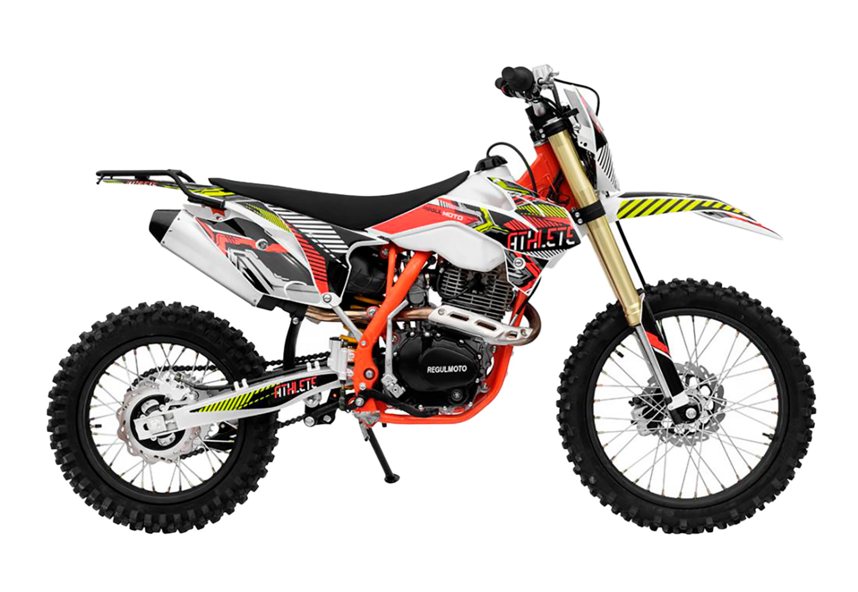 Regulmoto ATHLETE 250 - мотоцикл любительского уровня, подходящий для покатушек по лесу и полям.Основными особенностями которого являются: прочная рама из хромомолибдена, хорошая тормозная система, прочный толстостенный руль, бензобак 6,5 литров, надежный мотор имеющий мощность около 21 лошадиной силы. У нас Вы можете купить этот мотоцикл с бесплатной доставкой по РФ и гарантией до года. Также его можно приобрести в рассрочку или в кредит.
