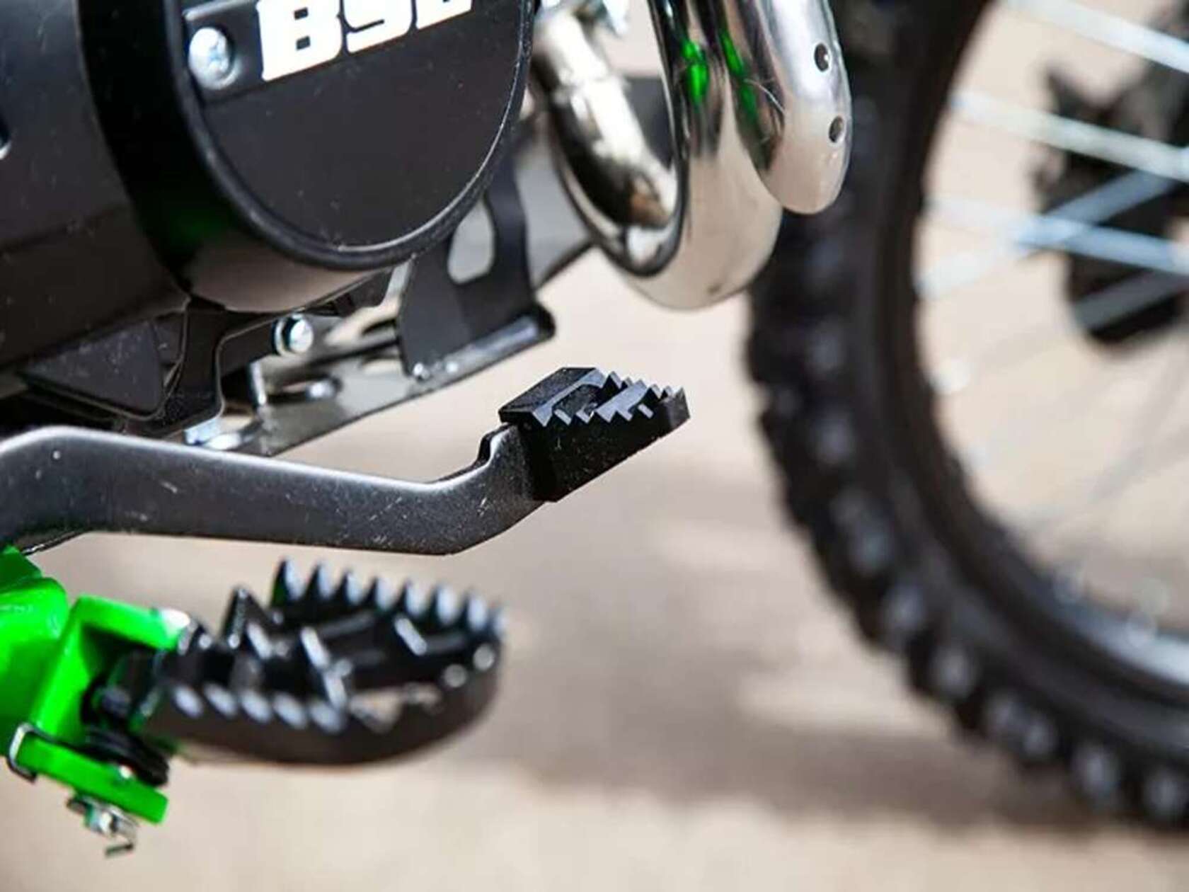 Питбайк BSE MX125 17/14 Racing Green - отличный выбор для тех, кто делает первые шаги в мире спорта, кросса и оффроада. В оригинальной, усиленной, хромомолибденовой раме BSE, устанавливается мощный 4-х тактный двигатель Zonghshen 125 куб см с воздушным охлаждением и 4-ступенчатой коробкой, в рабочем тандеме с спортивным карбюратором MIKUNI VM 22 способный развивать мощность 10 лошадиных сил. Удлиненная колесная база и превосходная подвеска увеличивает курсовую устойчивость питбайка и позволяет райдеру с большим комфортом управлять им на прямых участках трассы и с легкостью проходить "острые" повороты и подъёмы и любые неровности. Мощная тормозная система HSK Racing c армированными тормозными шлангами.Подвеска питбайка базируется на традиционном выборе комплектующих: телескопическая вилка-«перевертыш» впереди и моноамортизатор сзади. Настройки отбоя/сжатия имеются только у заднего амортизатора, работа вилки корректируется заменой масла. MX 125 укомплектован резиной с увеличенным грунтозацепом, фильтрбоксом, короткоходной ручой газа.