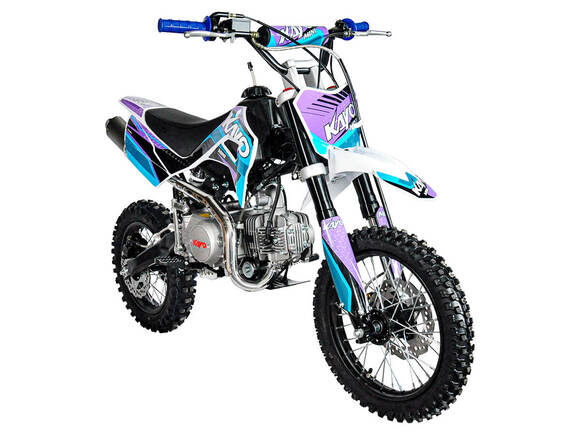 Питбайк KAYO Mini К125EM 14/12 – идеальный снаряд для юных экстремалов, который можно использовать на лёгких кроссовых трассах и дорогах с различным покрытием. Подходит для детей от 10 лет, желающих освоить технику езды на внедорожном мотоцикле. Удобный, простой и надёжный мотоцикл, который полностью оправдывает свою цену.Одноцилиндровый 4-тактный двигатель воздушного охлаждения производства KAYO объёмом 125 см3, выдаёт 9 л.с. Карбюратор NIBBI PE19 обеспечивает бесперебойную работу техники в самых жёстких условиях эксплуатации, простоту и лёгкость в обслуживании, а также неприхотливость к качеству топлива. Питбайк оснащён механической 4-ступенчатой коробкой передач с формулой “N-1-2-3-4”.Аппарат имеет вес всего 70 кг. Усиленная рама из хром-молибденового сплава и подвеска позволяют эффективно амортизировать удары при езде по неровностям и препятствиям на трассе. Передняя подвеска —телескопическая вилка длиной 625 мм, задняя —моноамортизатор 280 мм. Рама и пластик разработаны фирмой KAYO. Мотоцикл оснащён классическими стальными спицованными колёсами диаметром 14 дюймов спереди и 12 дюймов сзади. Эффективное и безопасное замедление с любых скоростей обеспечивают гидравлические дисковые тормоза марки HSK.Высококачественная износостойкая резина с развитым протектором отлично держит дорогу на различных типах покрытия. Аппарат оснащён системой запуска двигателя при помощи кнопки электростартера или при помощи рычага кик-стартера.Если вы ищете послушный, компактный, шустрый, красивый питбайк для своего малыша, считайте, что вы его нашли. Это один из лучших мотоциклов для обучения и первых шагов в эндуро и мотокроссе. Он отлично подойдёт как для гонок на трассе, так и для покатушек по пересечённой местности.