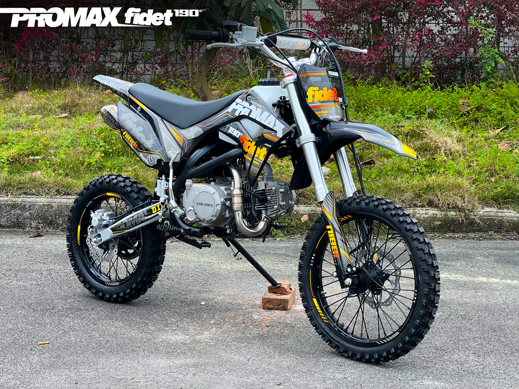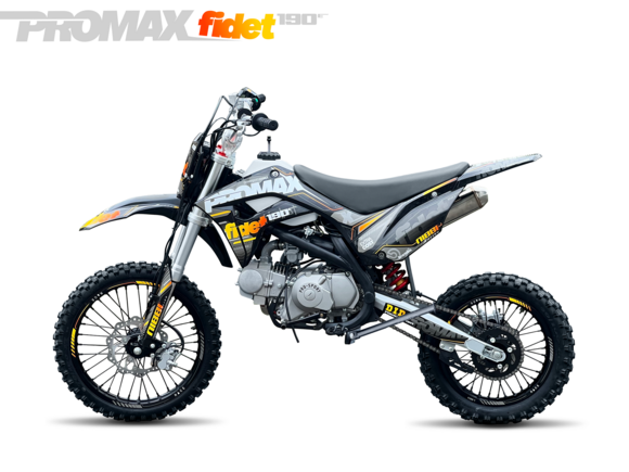 Питбайки PROMAX FIDET это премиальная серия техники для занятия мотоспортом.Техника создана по высочайшему уровню с использованием самых качественных компонентов.Рама серии PROMAX FIDET (ФАЙДЕТ) имеет уникальный скелет, созданный по технологии пространственной рамы и имеет идеальную разрисовку, что оценит любой профессиональный райдер. Правленая разрисовка, это основа для комфортной езды и грамотного управления кроссовым мотоциклов. Рама созданная на базе разработок KTM Factory Edition и имеет уникальный сплав, для облегчения без потери жесткости конструкции.Сердце, это двигатель премиального производителя YX150E (YINXIANG) с не менее знаменитым источником подачи топливной смести в лице Японского карбюраторf NIBBI, данная связка двигателя с карбюратором зарекомендовали себя на соревнованиях Motocross of European Nations. Питбайки JMC, DAYTON и другие, в основе которых были двигателя YINXIANG заняли весь пьедестал в Motocross of European Nations.Премиальная подвеска подвеска ITALIN V-ONE 810 мм, Задняя подвеска: ITALIN V-ONE 350 мм от компании MNT, это одно из лучший решений для питбайков!Выхлопная система от культового производителя Akrapovic с внешней камерой в Powerbomb позволяет воздуху расширяться, охлаждаться и ускоряться с большей скоростью, что придает больше мощности в базовых двигатель и создает более благородный, басистый звук!Алюминиевые колеса KKN, это элемент который вы можете встретить только в Японских или дорогих Тайваньский мотоциклах. Кроме того, колеса оснащены АНТИ-БУКСАТОРАМИ компании ALFA-PRO, которые не позволяют вашей покрышке провернутся при большой нагрузке. Важный элемент для профессионалов!Пластиковые элементы от премиального производителя RXF PLAST PRO, этот пластик выдержит значительно больше нагрузки чем у конкурентов!Базовые модели FIDET (FIDELIS) оснащены датчиком моточасов ,позволяющим отслеживать периодичность для проведения технического обслуживания..